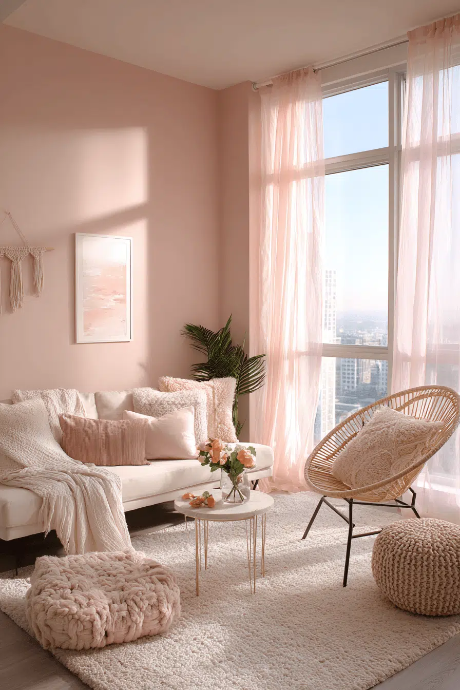 Soft colors can make a compact apartment feel more inviting. This small apartment inspiration uses gentle tones and layered textures. Minimal styling keeps the space open. Light fabrics enhance comfort. Warm lighting adds depth. The atmosphere feels cozy and relaxed. Tap to soften your interior.