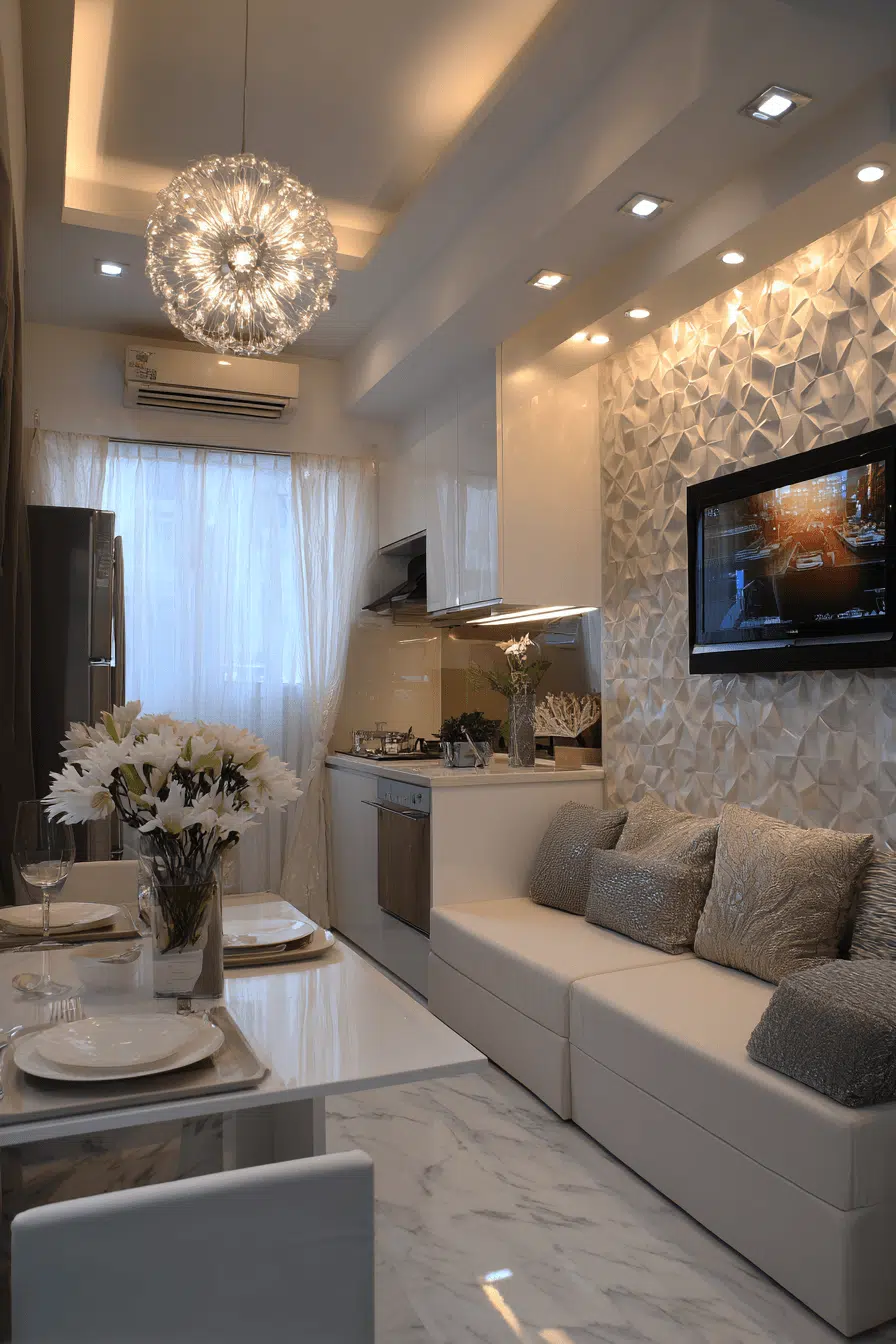 Luxury details can elevate a compact apartment without overwhelming it. This small apartment inspiration uses refined finishes and subtle accents. Neutral tones maintain harmony. Lighting highlights textures and materials. Compact furniture ensures practicality. The space feels modern and upscale. Explore how to elevate your home.