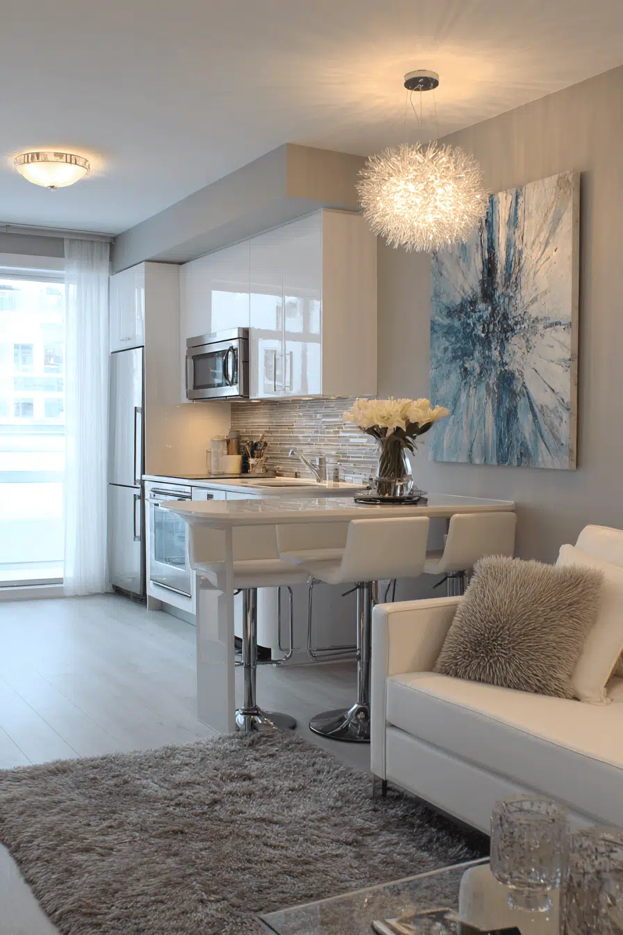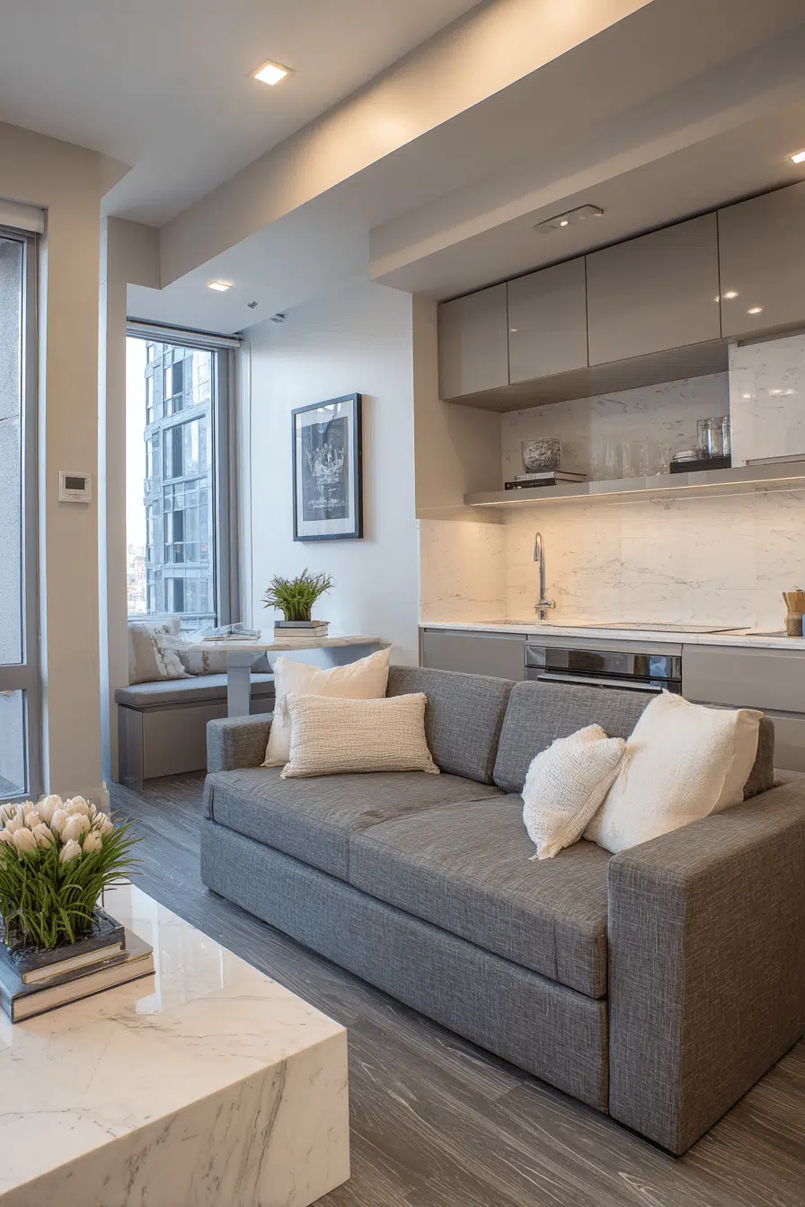 Modern styling can elevate a small apartment into something sleek and refined. This small apartment inspiration uses polished finishes and minimal decor for a clean aesthetic. Reflective details help expand the space visually. Multi-functional furniture ensures efficiency without crowding. Neutral tones keep everything cohesive. The space feels sophisticated and uncluttered. Discover how to achieve a sleek look.
