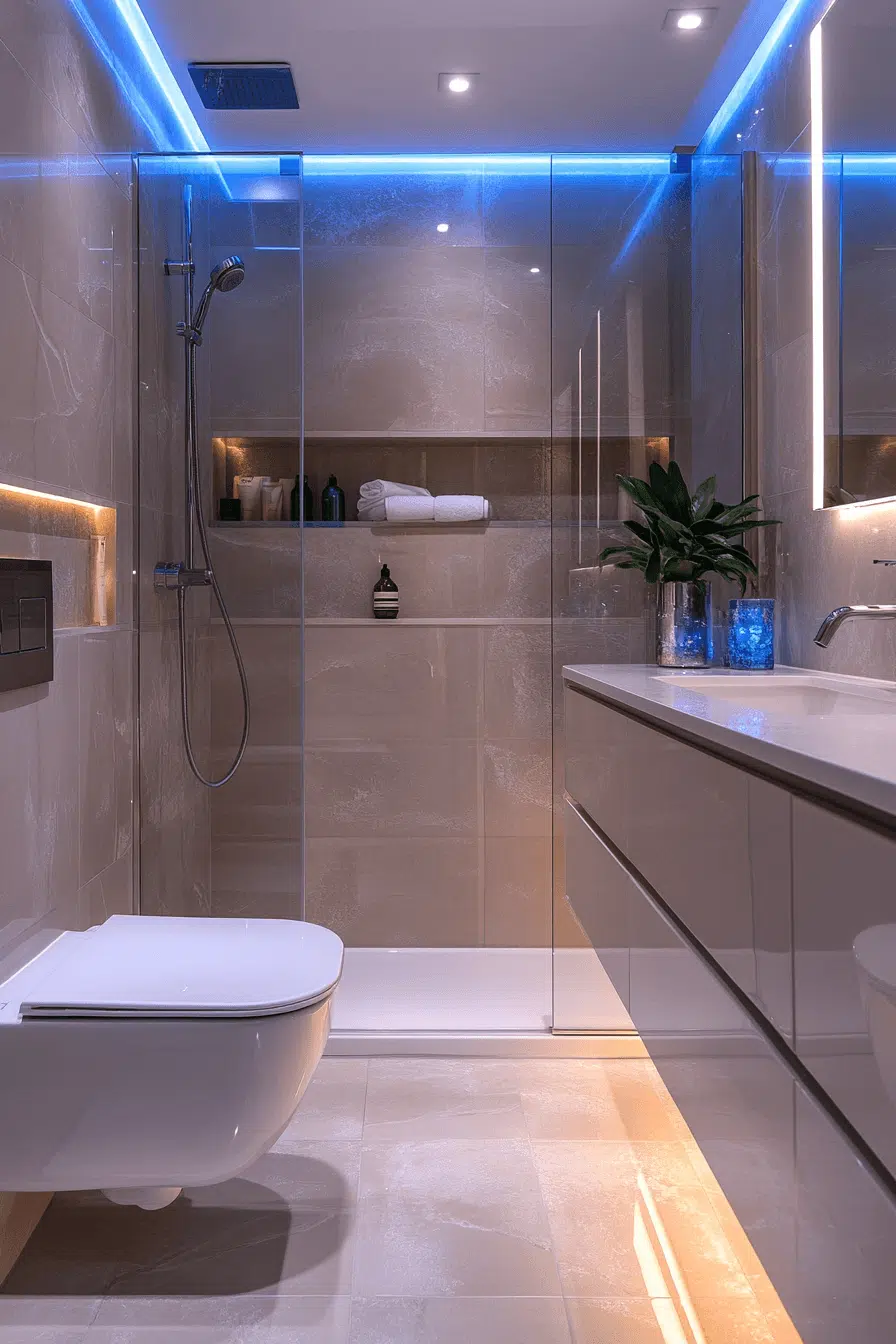 Intelligent features elevate a small bathroom aesthetic through convenience and efficiency. Smart lighting and modern controls simplify daily routines. Sleek finishes maintain a streamlined appearance. Innovation blends seamlessly with style. The space feels future-ready. Discover smart enhancements that upgrade your small bathroom aesthetic.