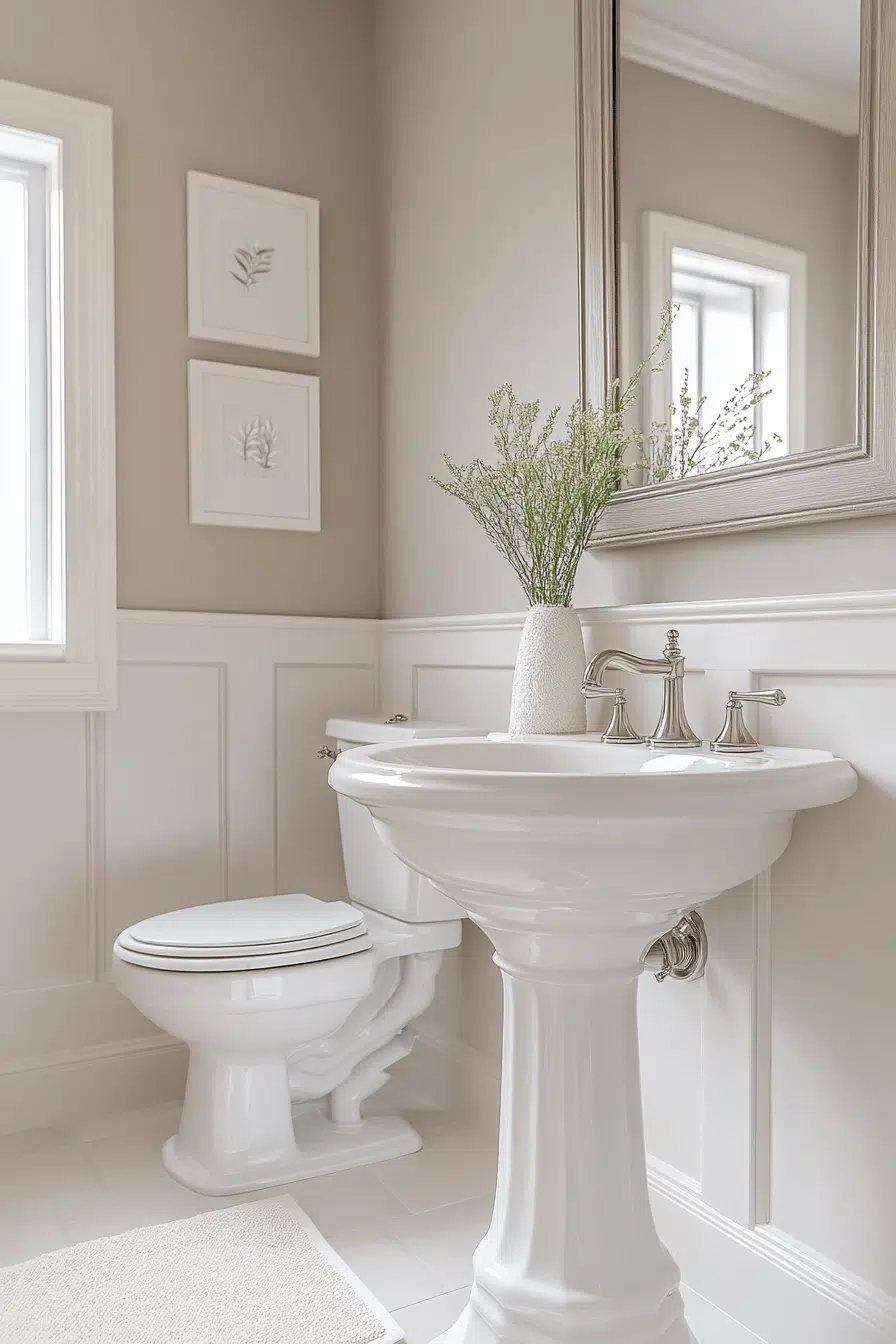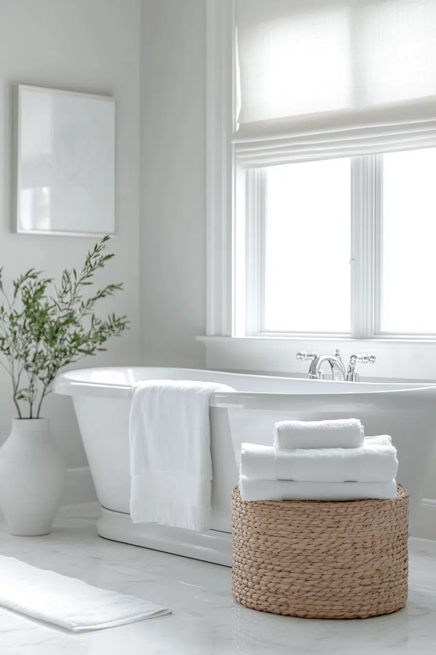 A white-on-white palette perfects a small bathroom aesthetic by maximizing light and calm. Layered shades add softness and dimension. Textural accents prevent the space from feeling sterile. The result feels spa-like and serene. White creates clarity and comfort. Explore serene white ideas that enhance your small bathroom aesthetic.