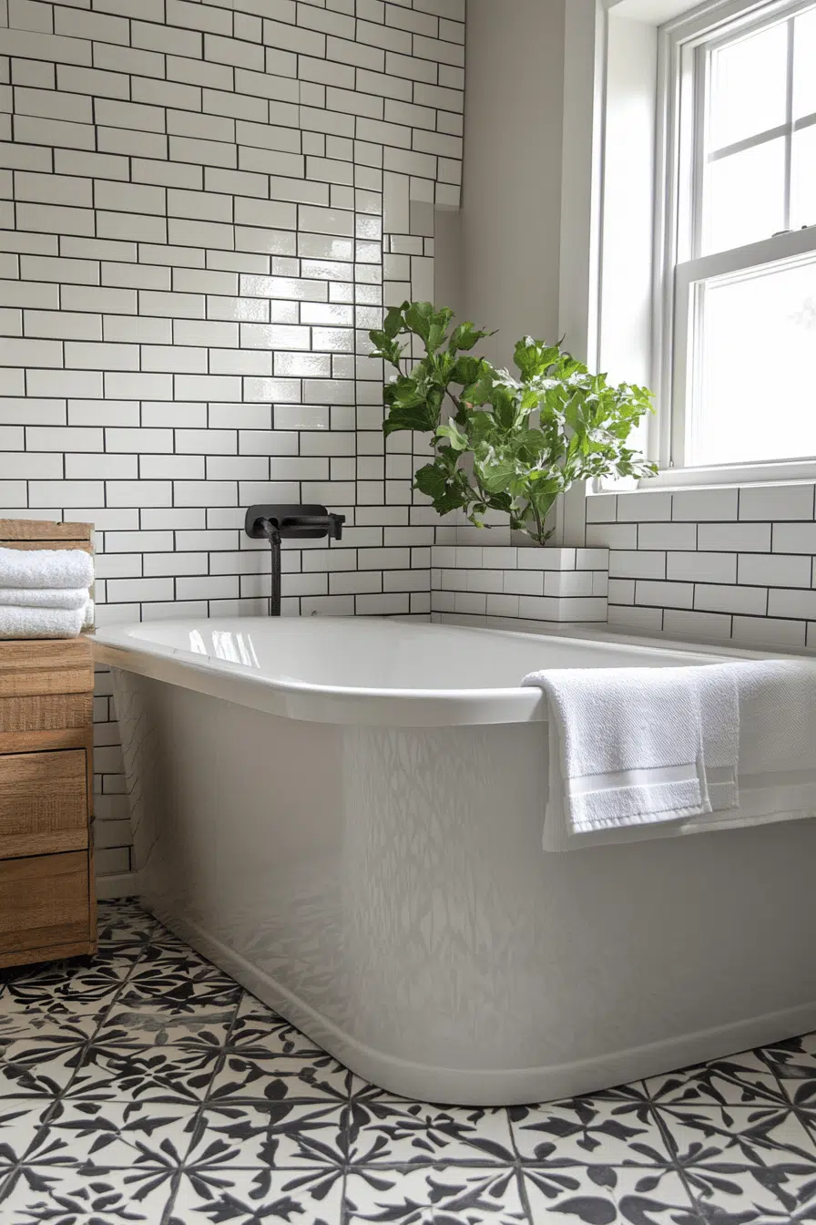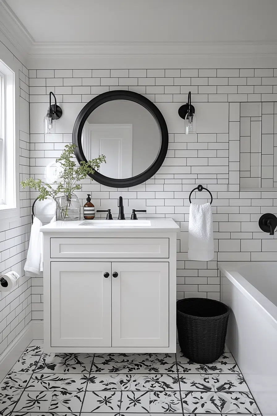 Geometric details energize a small bathroom aesthetic while maintaining structure. Repeating shapes create rhythm and visual movement. Neutral palettes keep the patterns controlled. The space feels curated and expressive. Geometry adds personality without chaos. Explore geometric design ideas that enhance your small bathroom aesthetic.