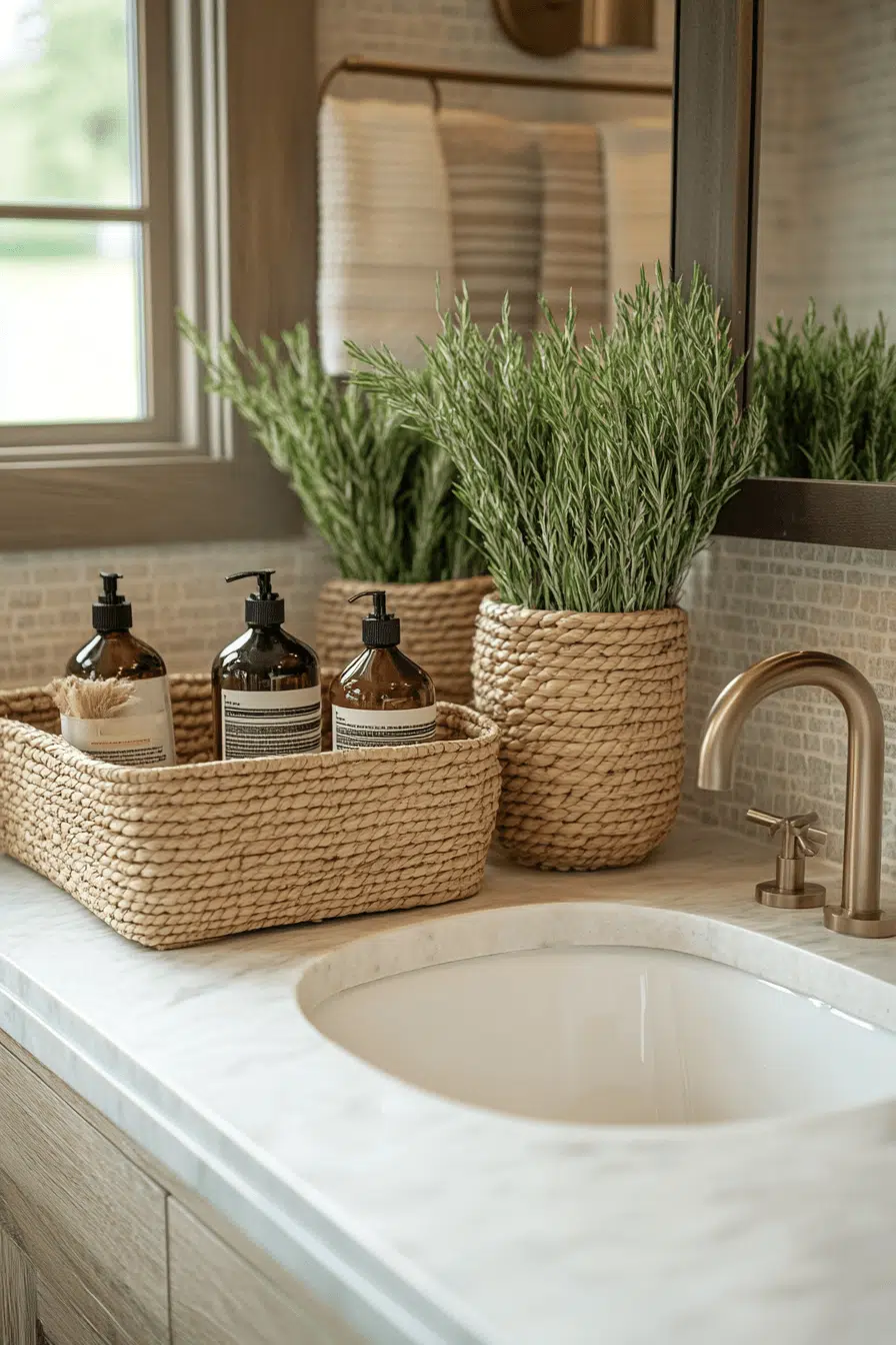 Organic materials help ground a small bathroom aesthetic in calm and balance. Natural textures introduce warmth while maintaining a clean layout. Earthy tones soften the overall design without making it feel heavy. The space feels peaceful and restorative. This approach encourages intentional living. Discover nature-inspired details that soften your small bathroom aesthetic.