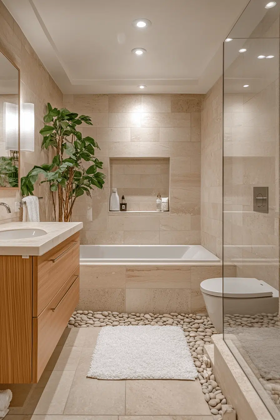 Soft neutral tones enhance a small bathroom aesthetic by reflecting light and warmth. Creams, ivories, and gentle taupes expand the space visually. Textural accents add comfort without visual weight. The design feels timeless and relaxing. Neutrals create lasting appeal. Explore warm neutral ideas that elevate your small bathroom aesthetic.