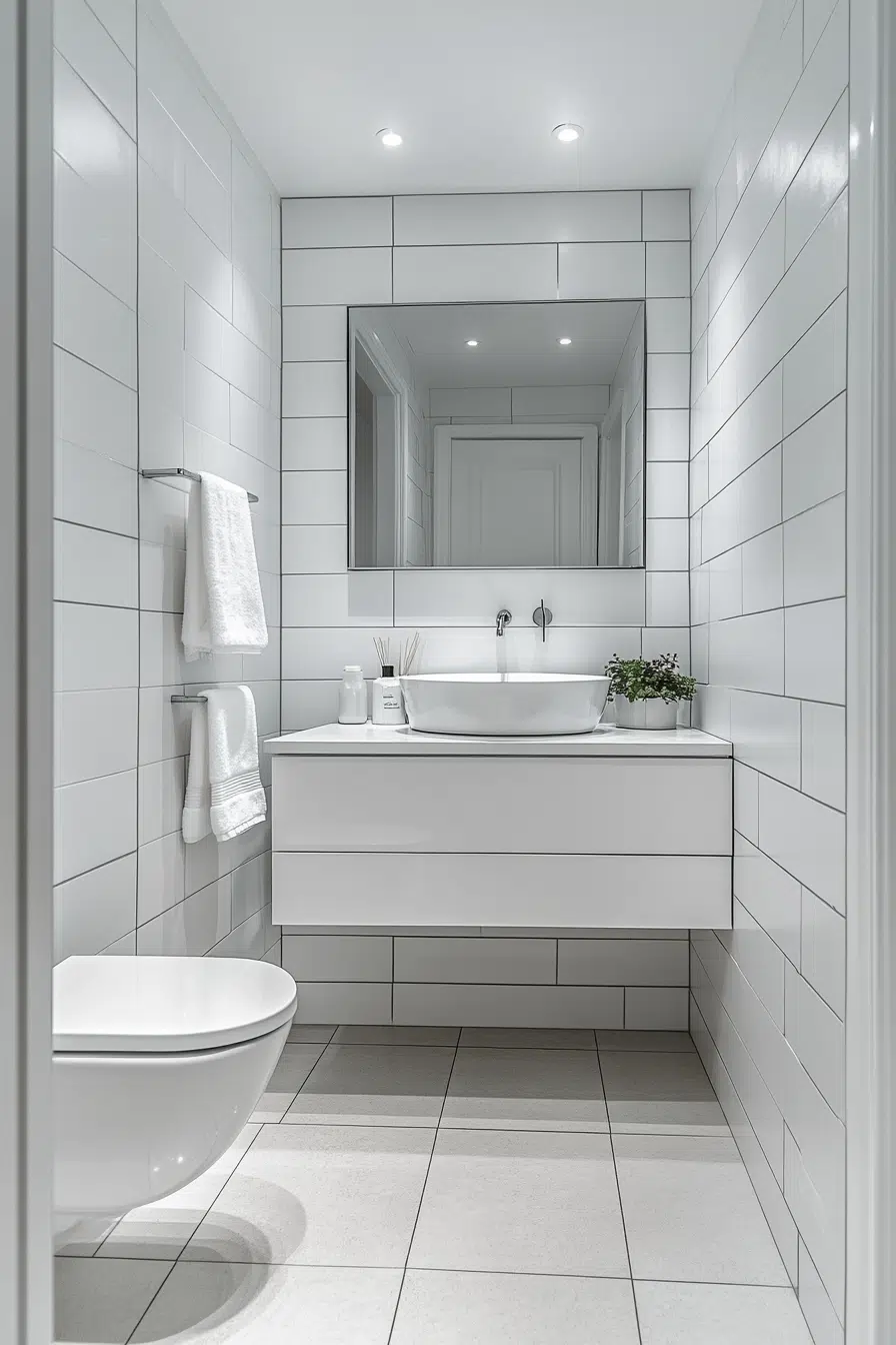 A white-on-white palette perfects a small bathroom aesthetic by maximizing light and calm. Layered shades add softness and dimension. Textural accents prevent the space from feeling sterile. The result feels spa-like and serene. White creates clarity and comfort. Explore serene white ideas that enhance your small bathroom aesthetic.