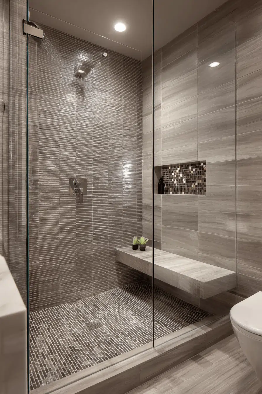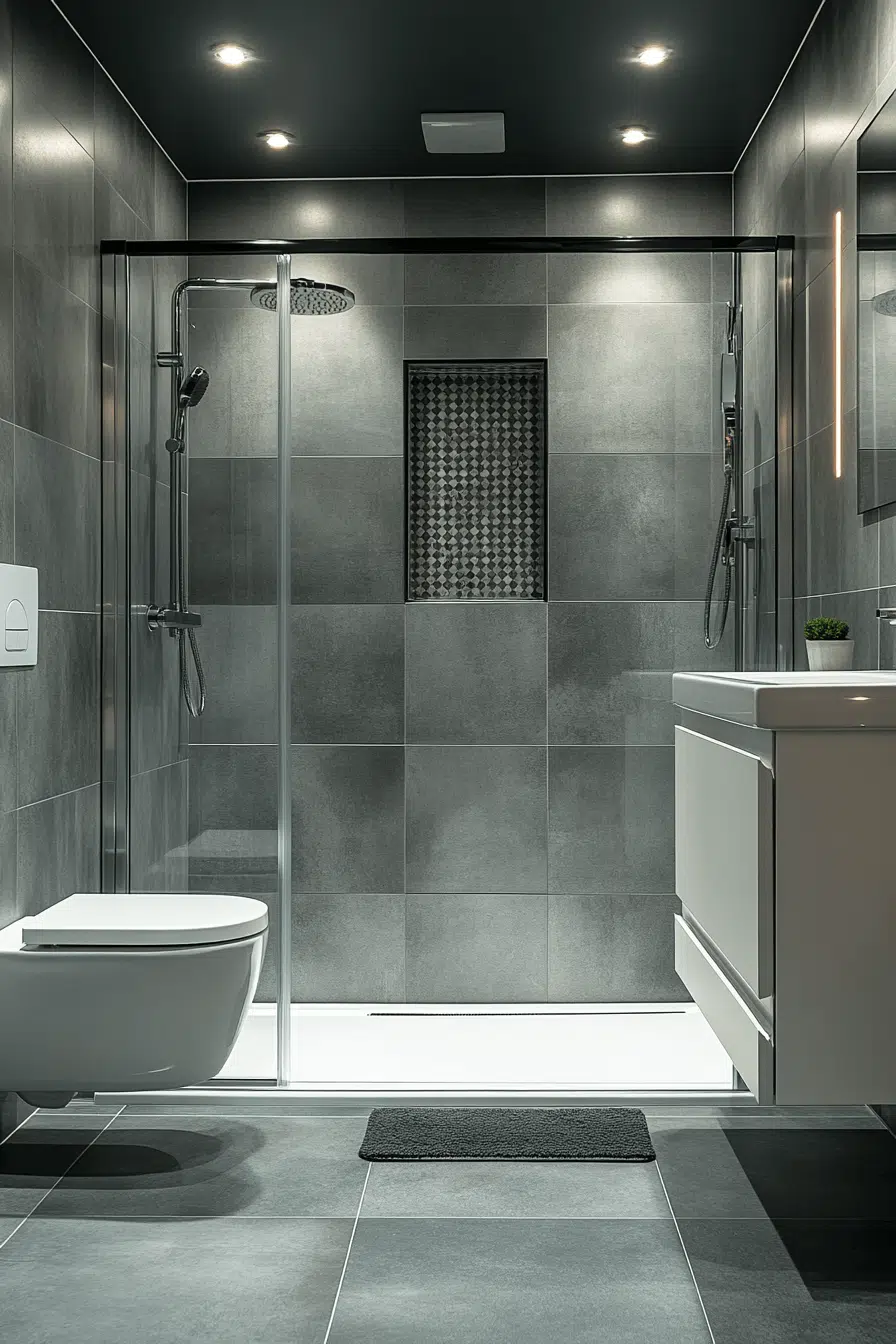 Neutral gray tiles strengthen small bathroom tile ideas through versatile calm. Soft tones create a spa-like ambiance effortlessly. Gray disguises everyday wear better than white. Pairing with metal or wood adds contrast. The palette feels balanced and enduring. Explore gray tile ideas that bring peaceful sophistication to small bathrooms!
