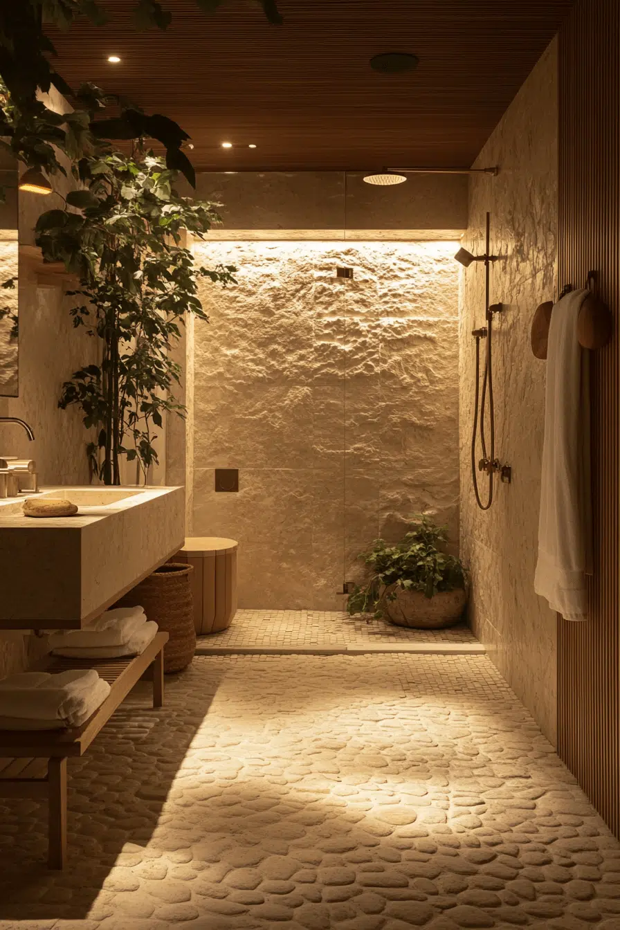 Organic stone textures enrich small bathroom tile ideas with natural serenity. Subtle surface variations add depth and tactile appeal. These tiles pair beautifully with wood accents and minimalist decor. Moisture-resistant finishes ensure lasting durability. The atmosphere feels spa-like and calming. Explore stone tile ideas that turn small bathrooms into peaceful retreats!