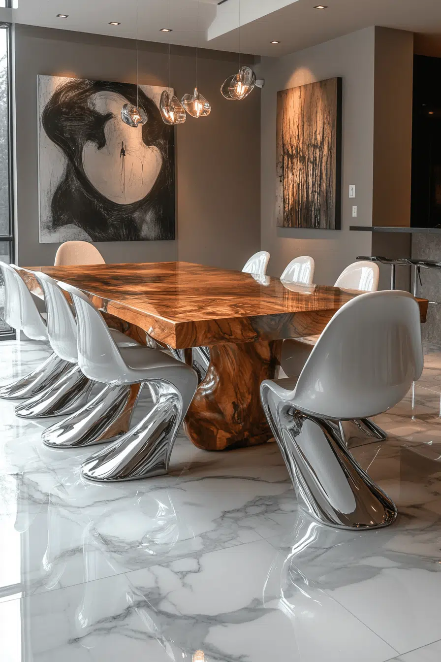 18. Sleek Chrome Dining Look