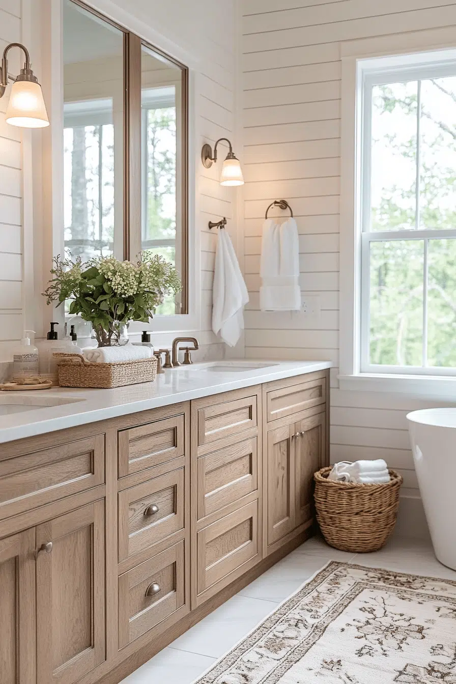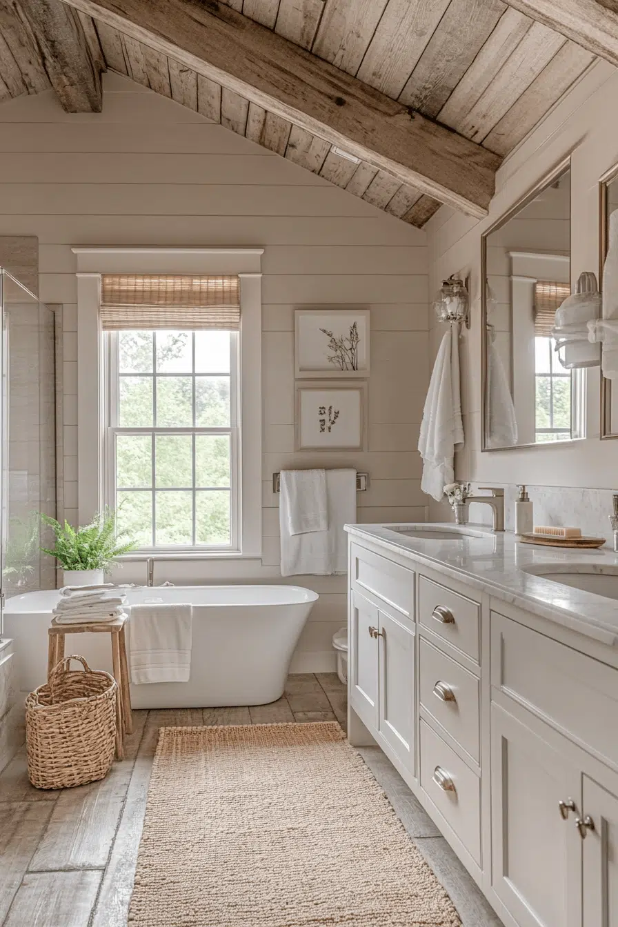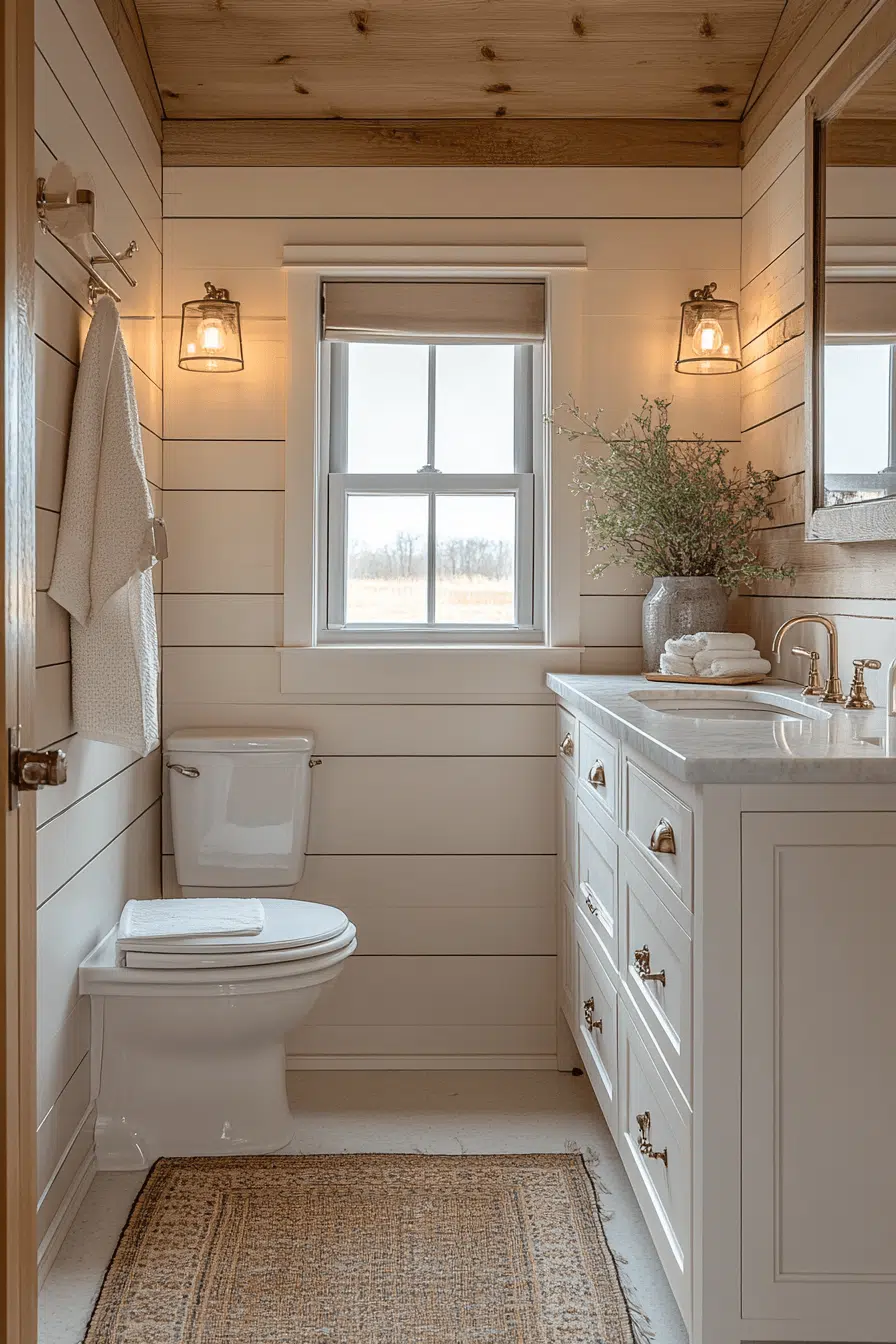 Transforming a compact bathroom into a charming retreat doesn’t require a massive footprint—just the right blend of rustic warmth and thoughtful design. Small farmhouse bathrooms have mastered the art of combining cozy textures, natural materials, and clean lines to create spaces that feel both inviting and functional. Whether you’re drawn to weathered wood accents, soft neutral palettes, or vintage-inspired touches, these 25 ideas prove that limited square footage can still deliver big style. From spa-like serenity to timeless barn charm, each design shows how layered textures, smart layouts, and simple details can make a small bathroom feel open, bright, and beautifully curated. Get ready to discover inspiring ways to bring farmhouse elegance into even the coziest of spaces.