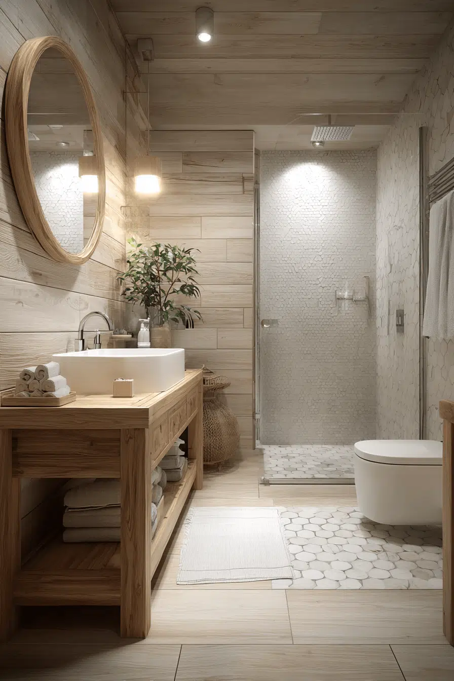 2. Timeless Wood Charm Bathroom