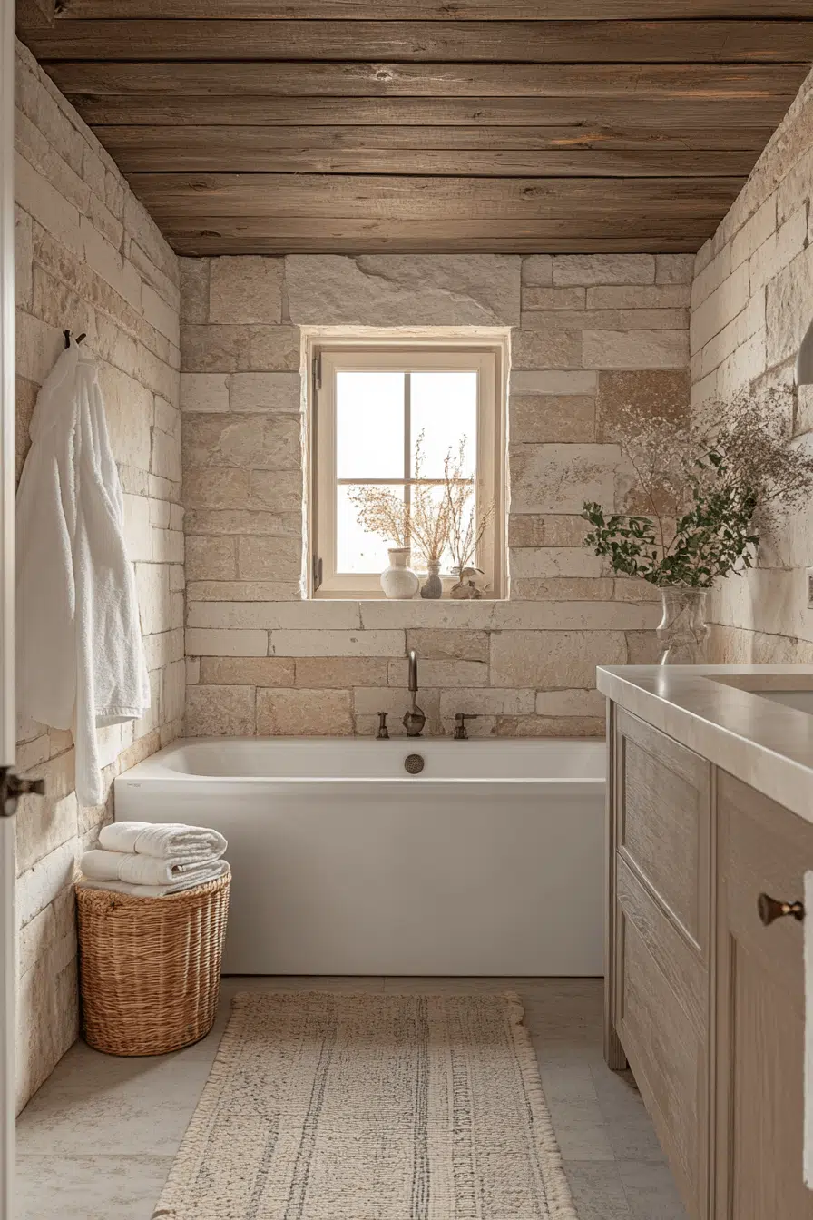 16. Natural Stone Calm Bathroom