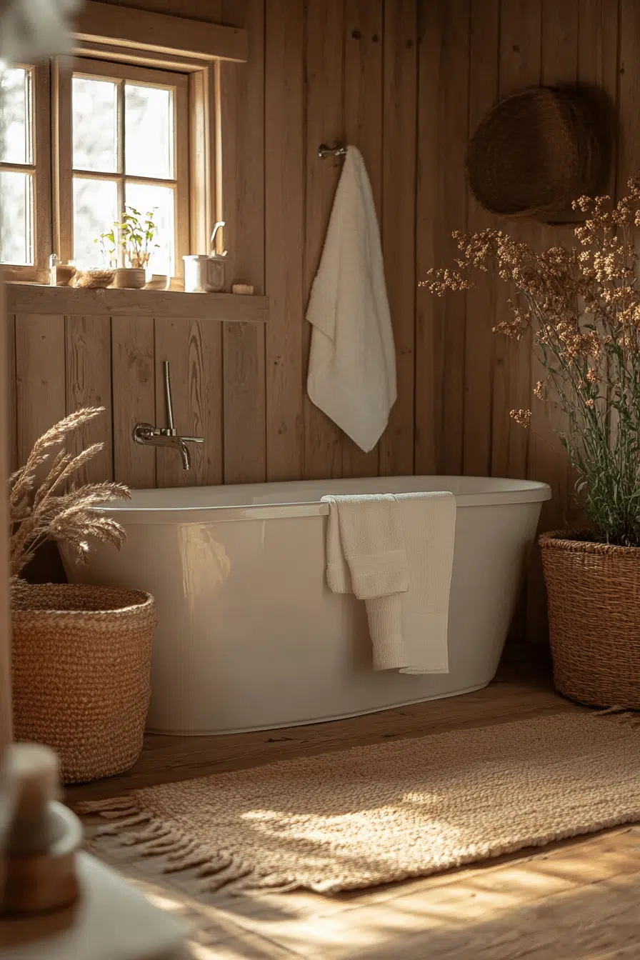 1. Cozy Rustic Bathroom Retreat