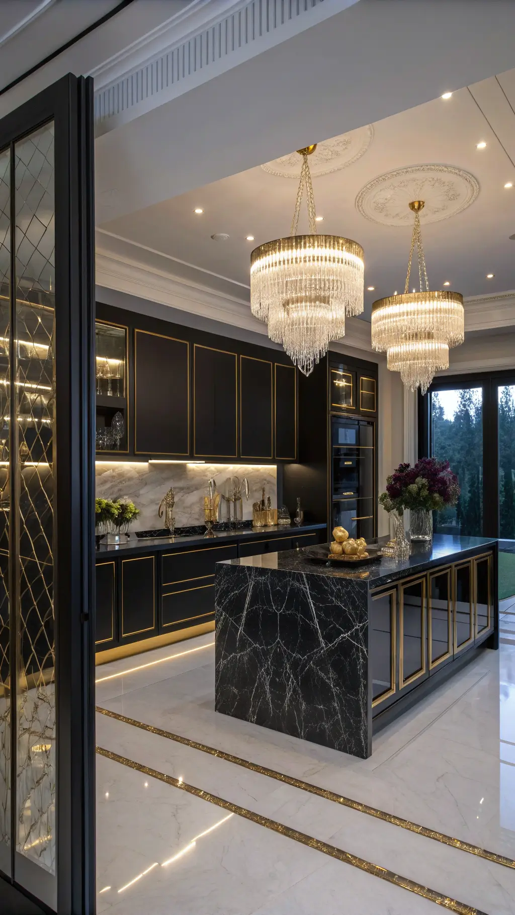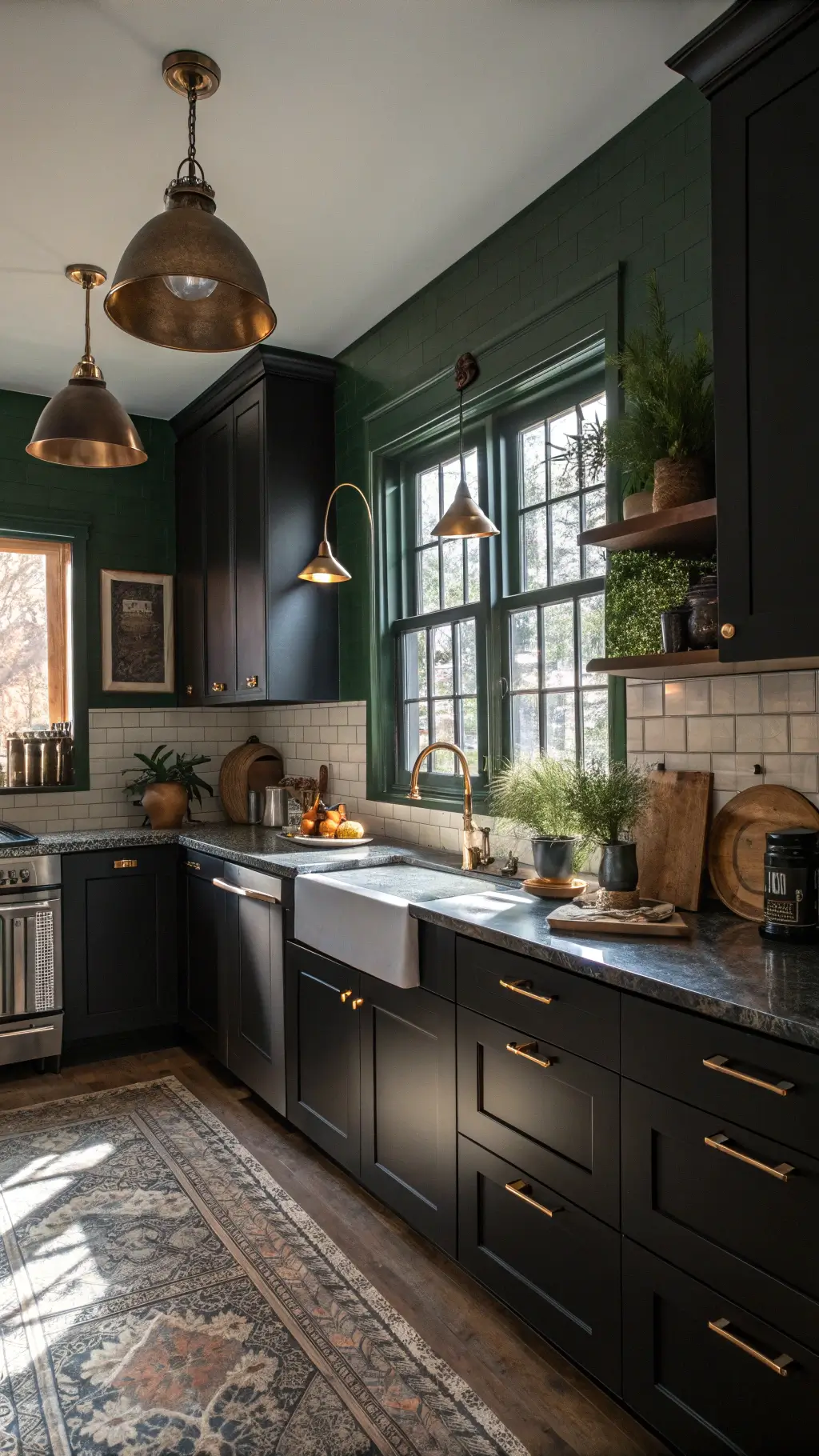 - Backsplash: Think black tiles or emerald mosaics