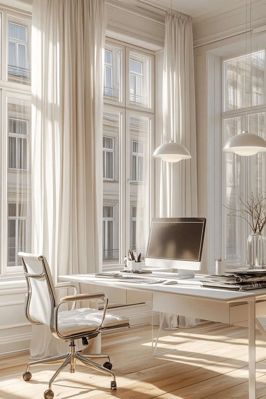 Natural light transforms small offices into bright and energizing environments. Open layouts enhance small office decor by maximizing brightness and space. Minimal furniture keeps light flowing freely. Reflective surfaces amplify the effect. Soft curtains maintain openness. The mood feels uplifting and productive. Brighten your workday instantly.
