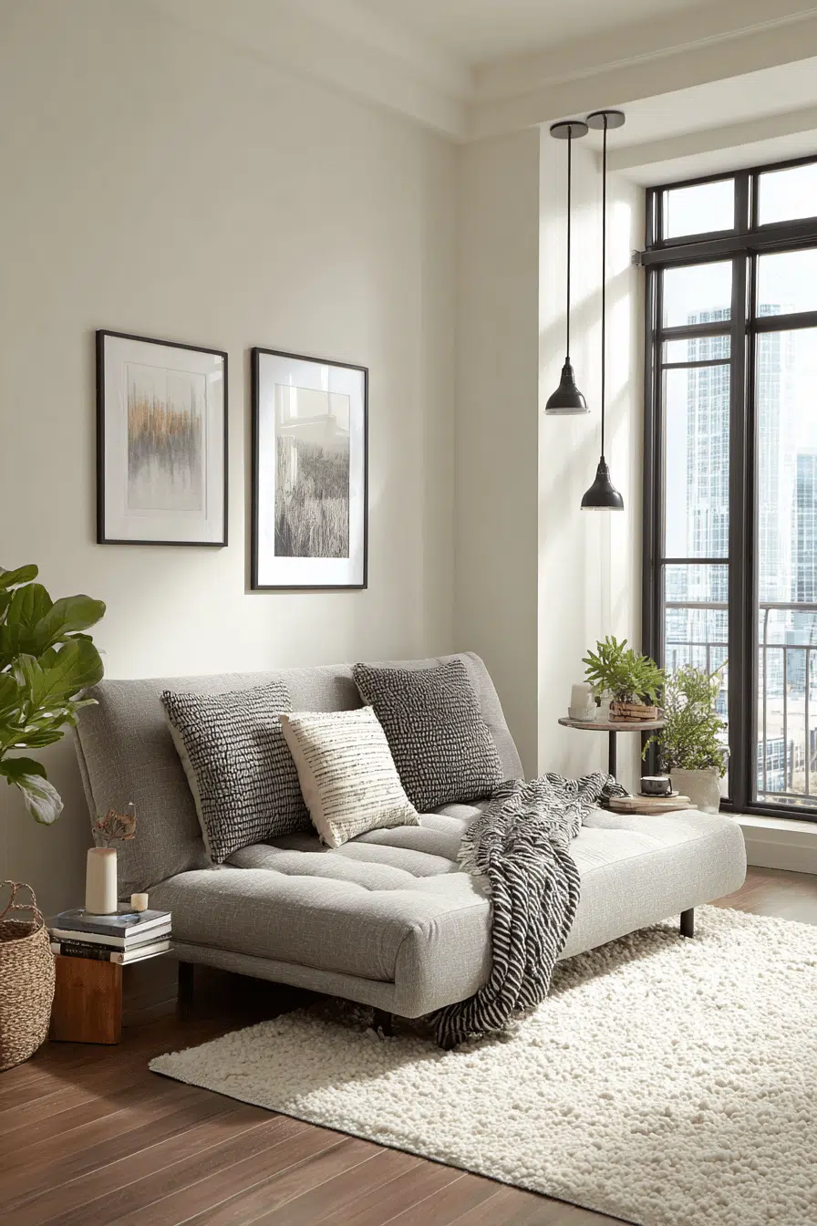 Minimal décor paired with plush seating creates harmony in a refined sofa bed living room inspired by Elegant Living Room Design. Carefully edited accessories prevent clutter. Cozy throws soften sleek silhouettes. Neutral tones enhance versatility. The sleeper feels stylish and deliberate. Tap to master minimal comfort!