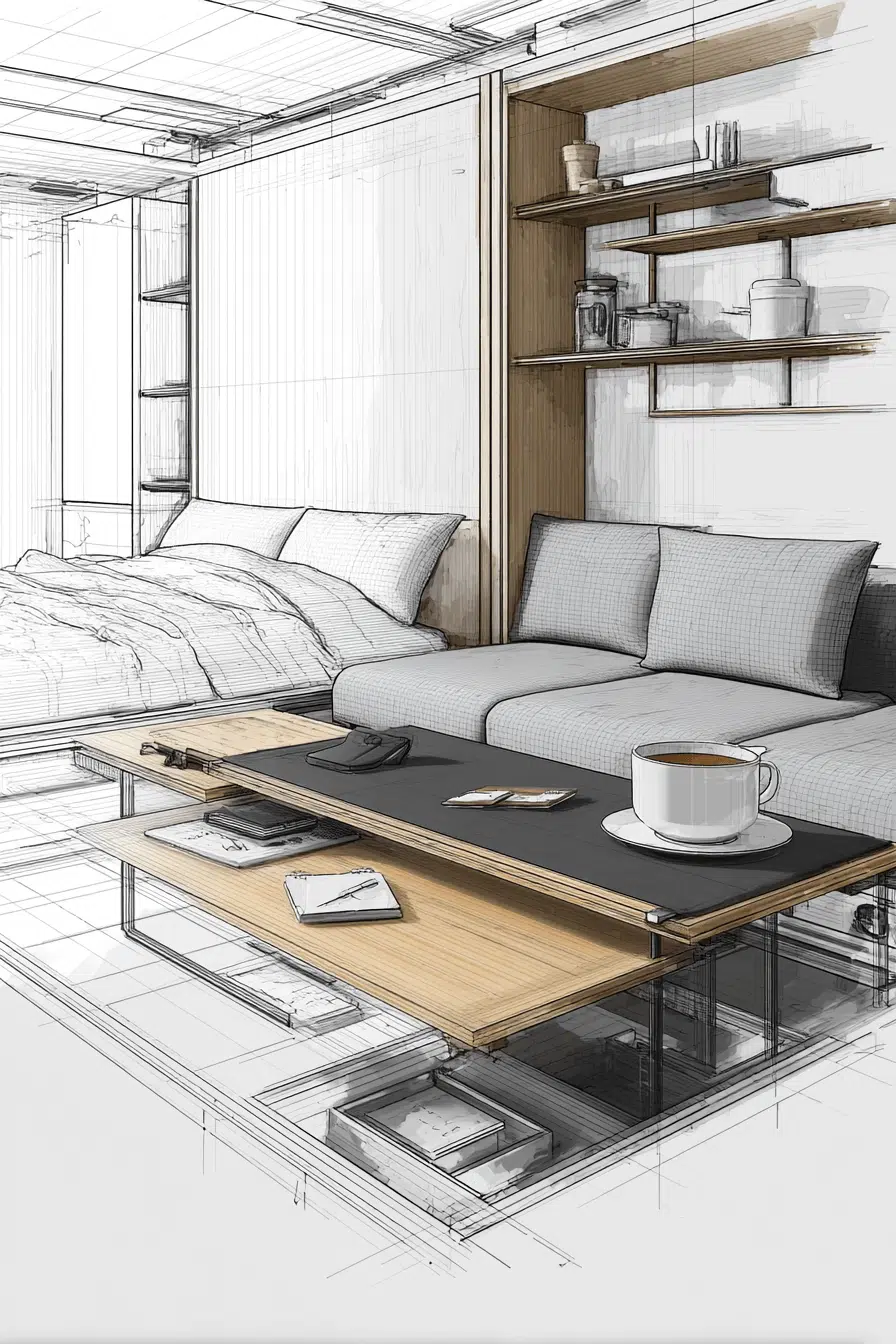 Smart storage elevates a compact sofa bed living room shaped by Elegant Living Room Design. Lift-top coffee tables conceal essentials effortlessly. Wall-mounted cabinets keep floors open. Hidden compartments maintain tidy transitions. The sleeper blends into the layout seamlessly. Tap to unlock clever organization ideas!