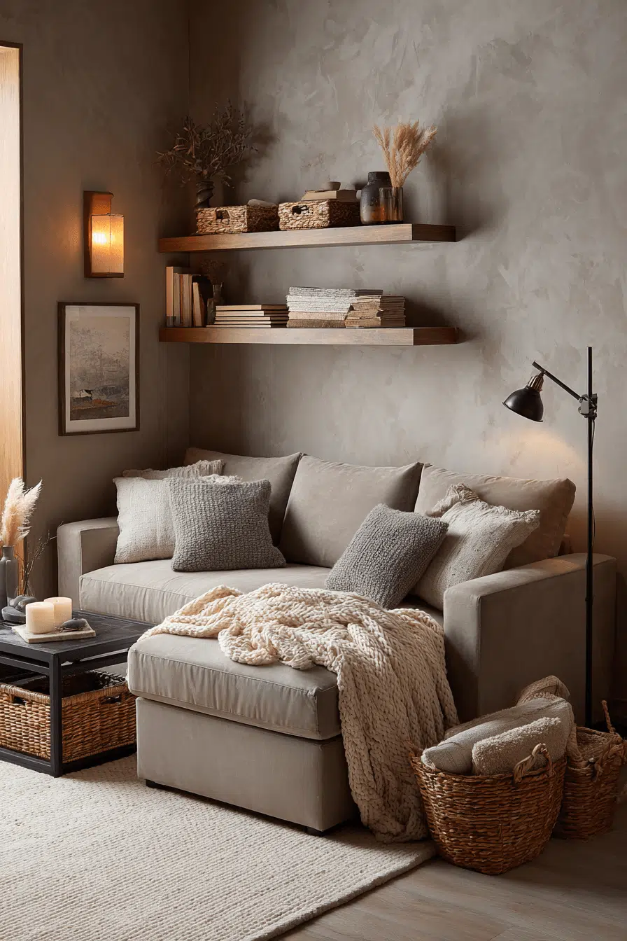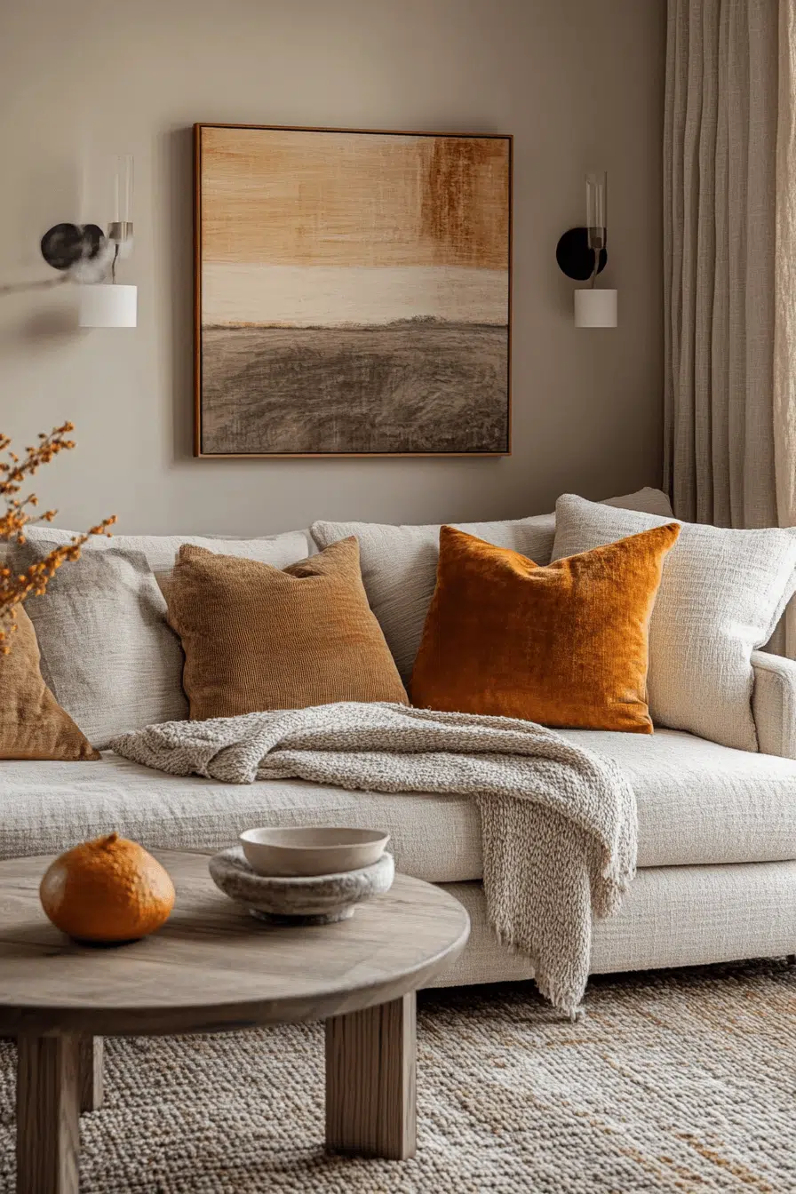 Earth-toned layers ground your sofa bed living room in inviting Elegant Living Room Design. Shades of sand, taupe, and soft clay build warmth. Textured fabrics prevent flatness. Matte black or bronze accents add subtle contrast. The sleeper blends naturally into the soothing palette. Click to discover earthy elegance!
