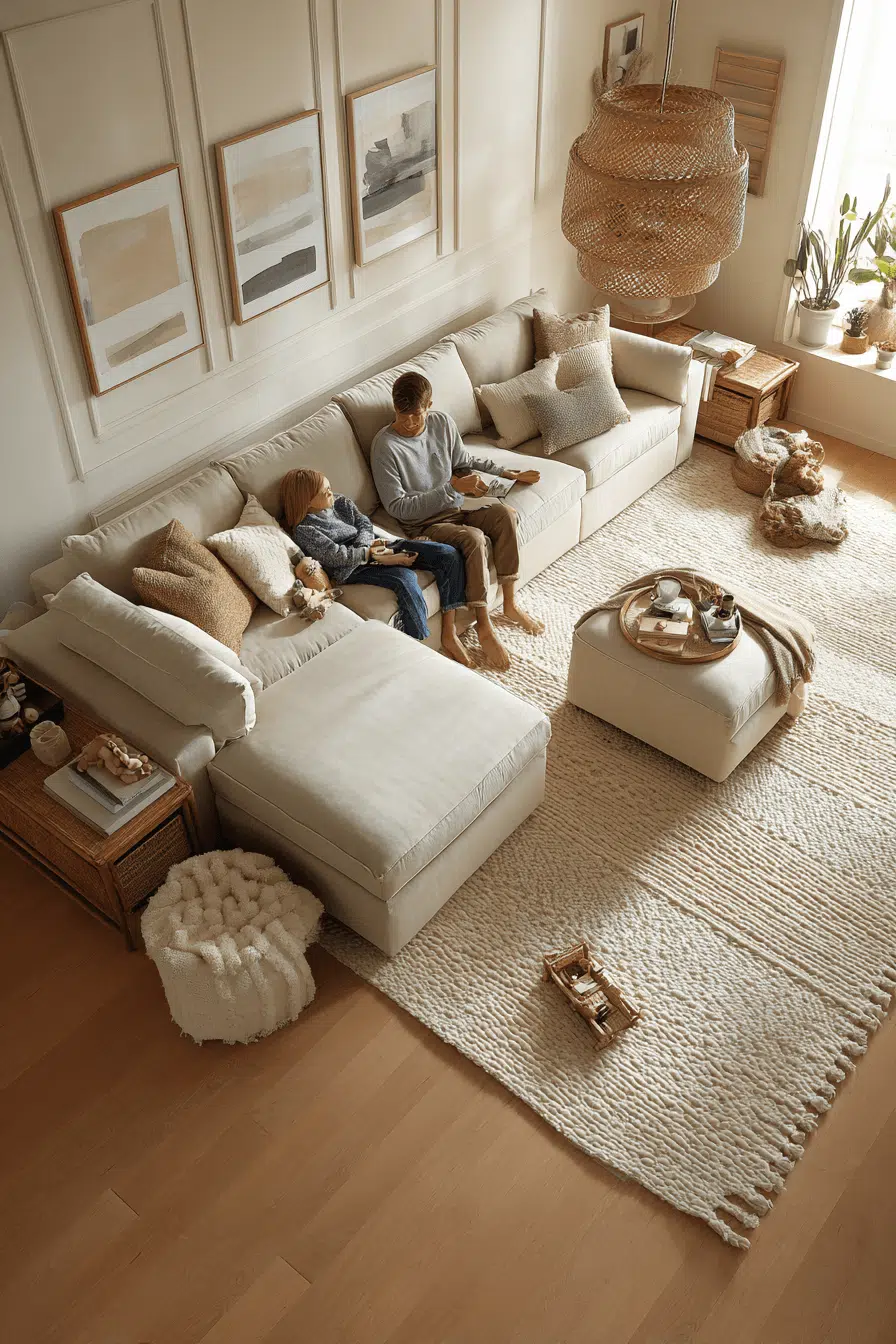 Durable fabrics support everyday life in a flexible sofa bed living room that honors Elegant Living Room Design. Stain-resistant upholstery maintains refinement. Modular tables adapt to changing needs. Neutral palettes allow easy décor updates. The sleeper functions beautifully without compromise. Tap to design for real life with elegance!