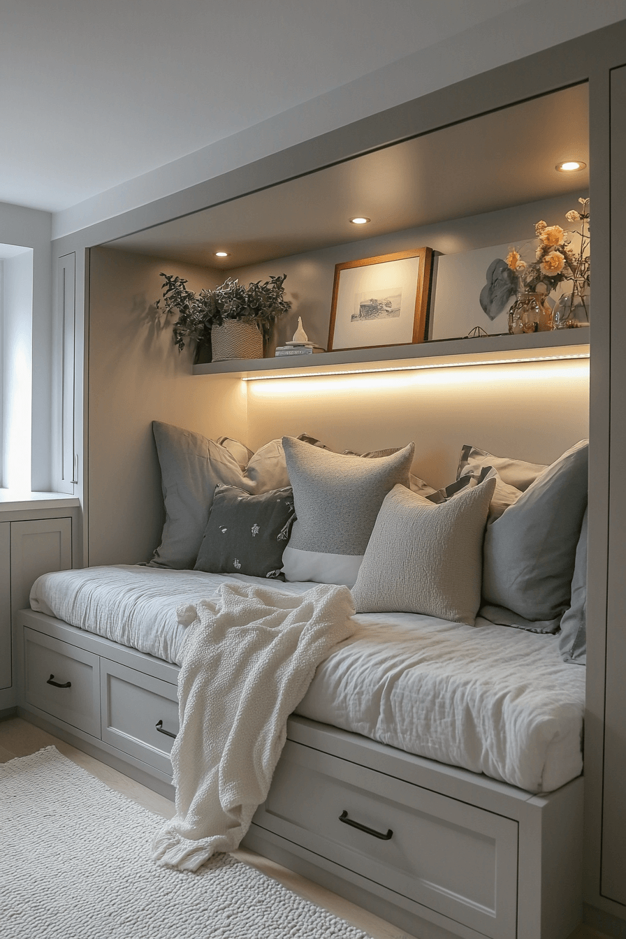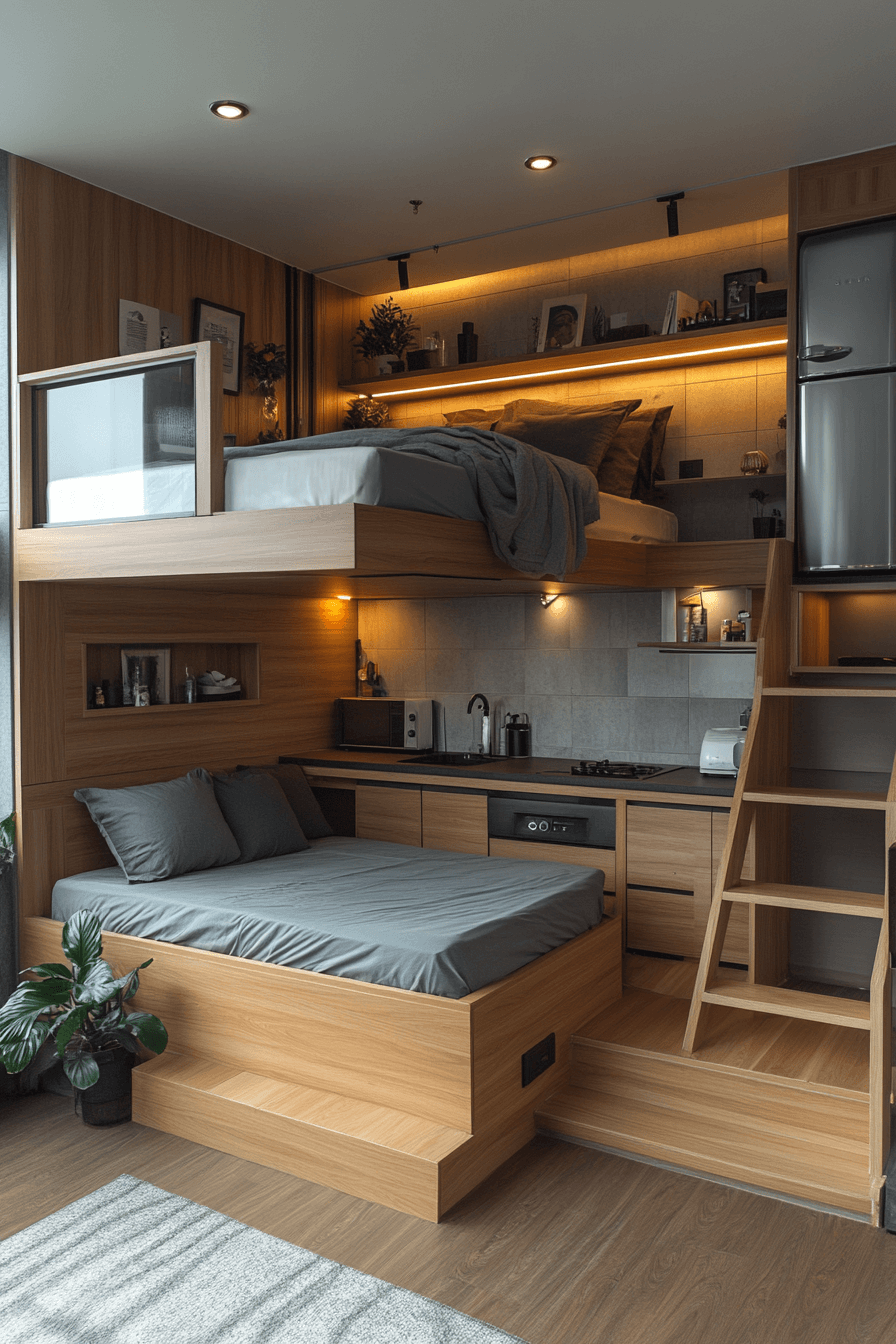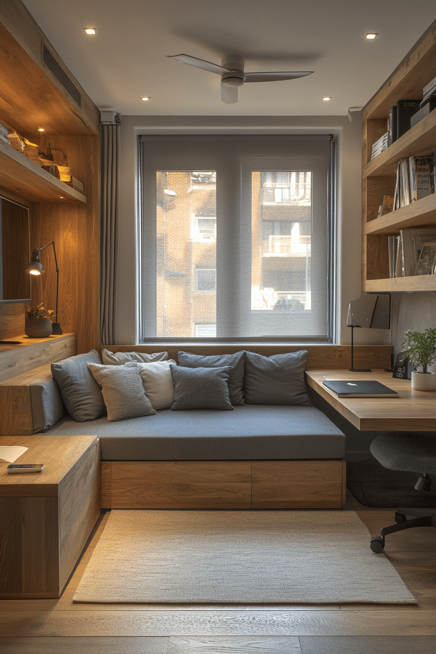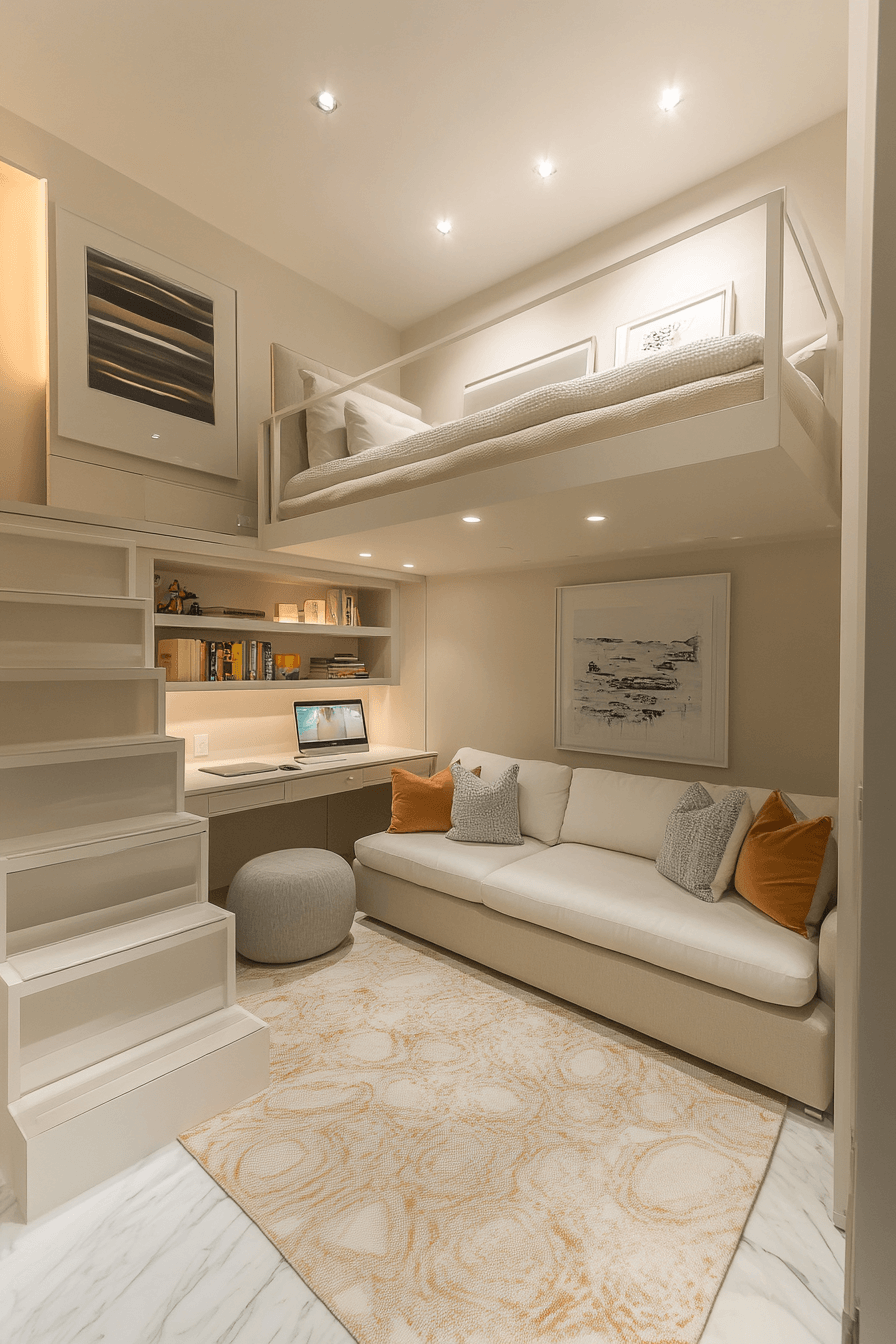 Space-smart layouts make every inch count. Loft beds, folding tables, and wall-mounted desks add flexibility. Subtle lighting and rugs create boundaries without walls. Open shelves keep things functional and airy.