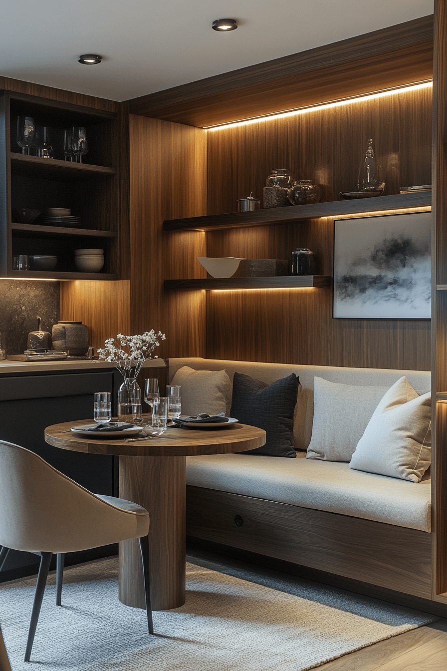 Even the smallest home can feel luxurious with the right touches. Soft fabrics, metallic accents, and gentle lighting create a refined, cozy feel. Carefully selected pieces prevent the space from feeling crowded. Neutral tones tie it all together beautifully.