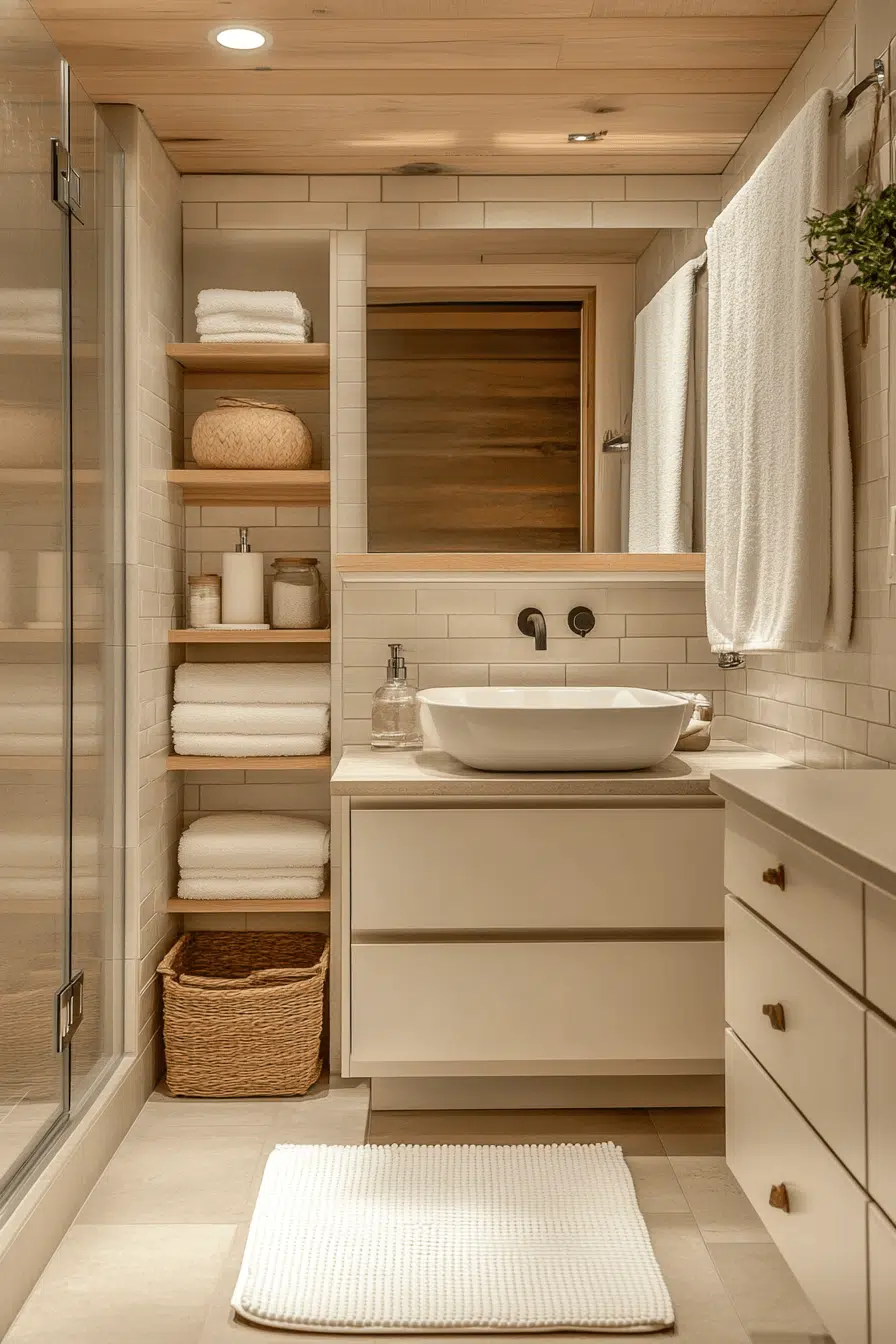With smart layouts, bathrooms can shine inside tiny cabins interiors. Floating vanities, corner showers, and vertical shelving conserve space. Light tiles and reflective surfaces enhance brightness. Multi-use fixtures add flexibility without clutter. The result is compact yet stylish. Explore bathroom layouts designed specifically for tiny cabin living!