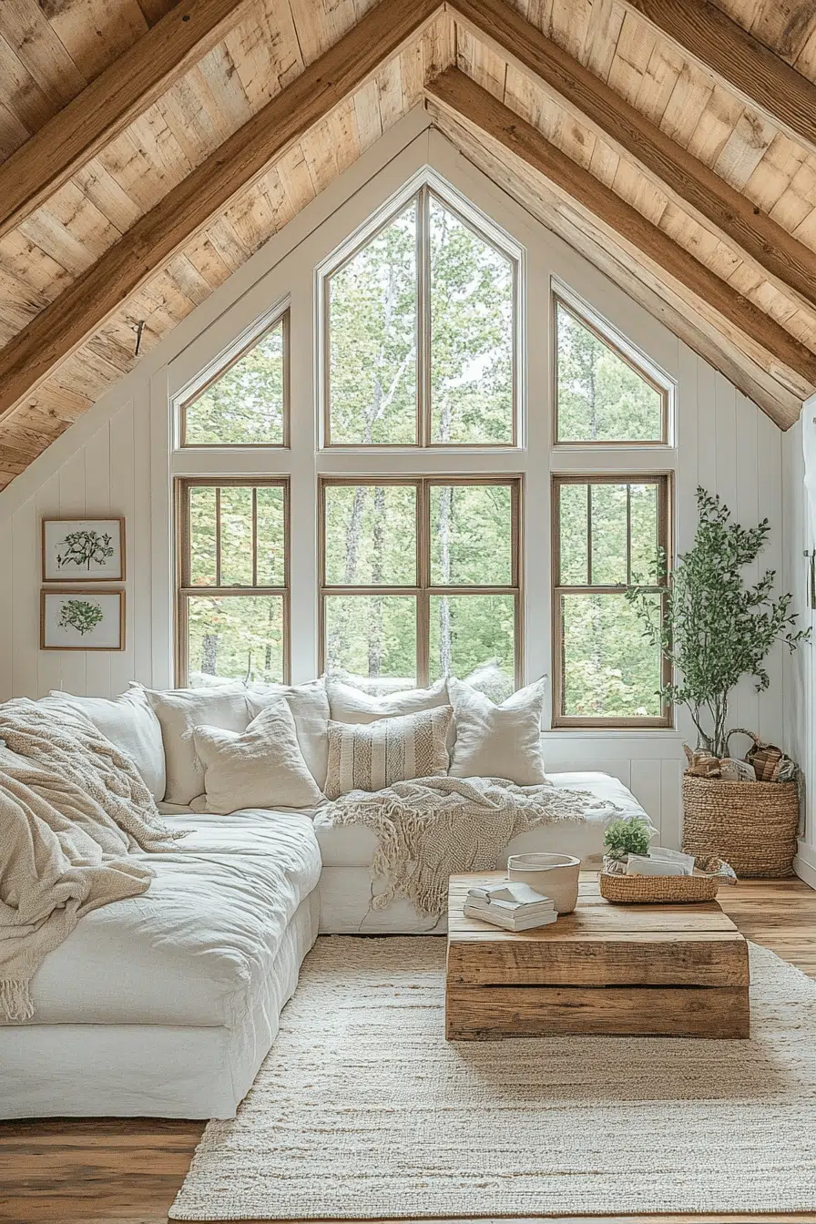 Vertical space transforms tiny cabins interiors when high ceilings are embraced. Exposed beams or crisp white finishes draw the eye upward. Skylights flood the space with natural light. Hanging fixtures add drama without bulk. Tall ceilings create an airy, expansive feel. Discover ceiling ideas that elevate tiny cabins beautifully!