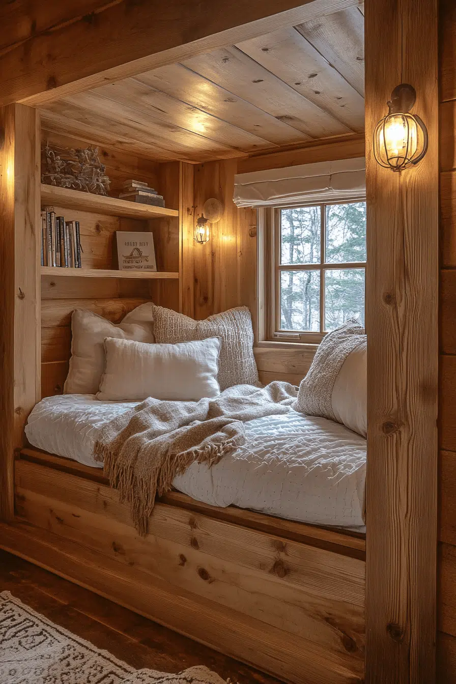 Built-in sleeping alcoves bring charm and efficiency to tiny cabins interiors by using architectural nooks creatively. Framed in wood or tucked into walls, they offer privacy without sacrificing space. Integrated lighting and under-bed storage boost comfort and practicality. Cushioned surrounds make these spots perfect for unwinding. Each nook feels personal yet purposeful. Explore cozy sleeping nook designs that elevate small cabin living!