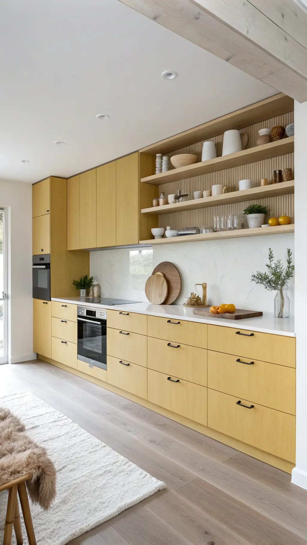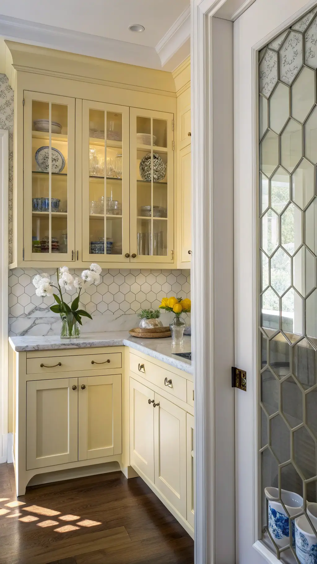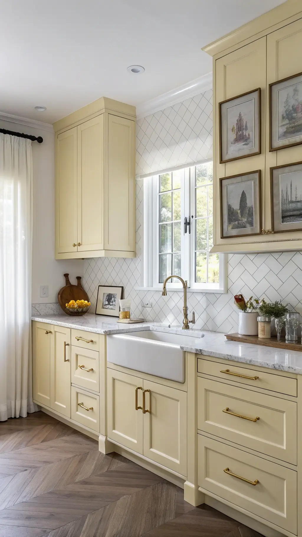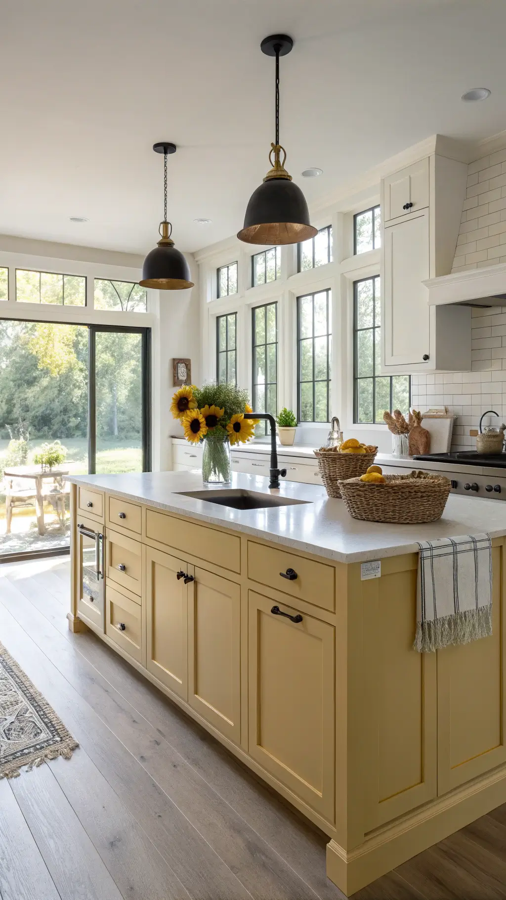 Pro Tip: Balance is key. Yellow cabinets need strategic companions.
