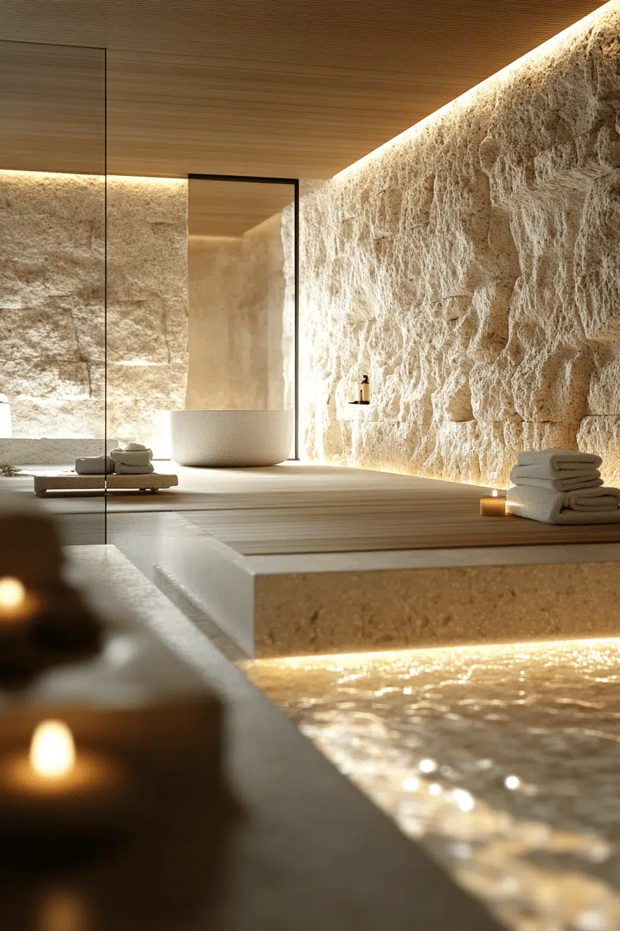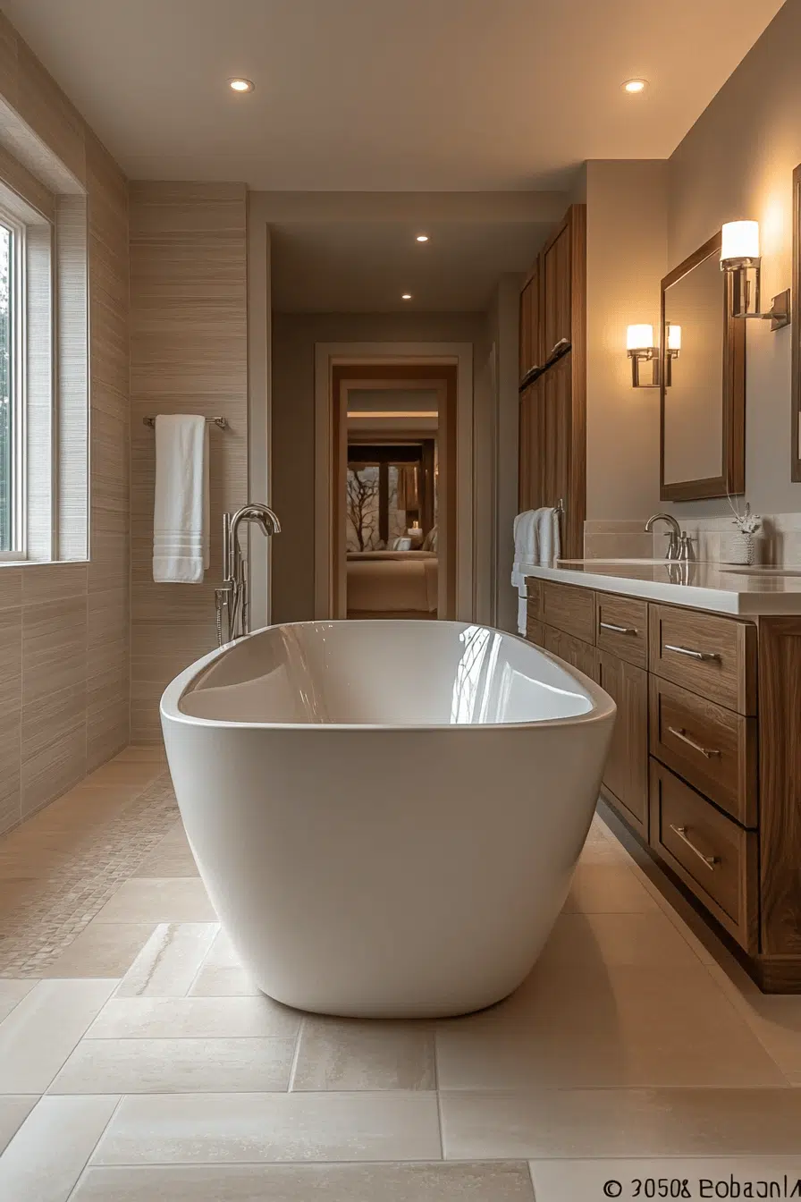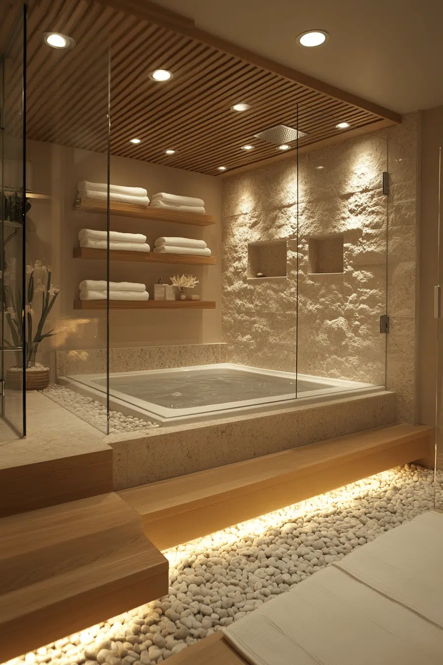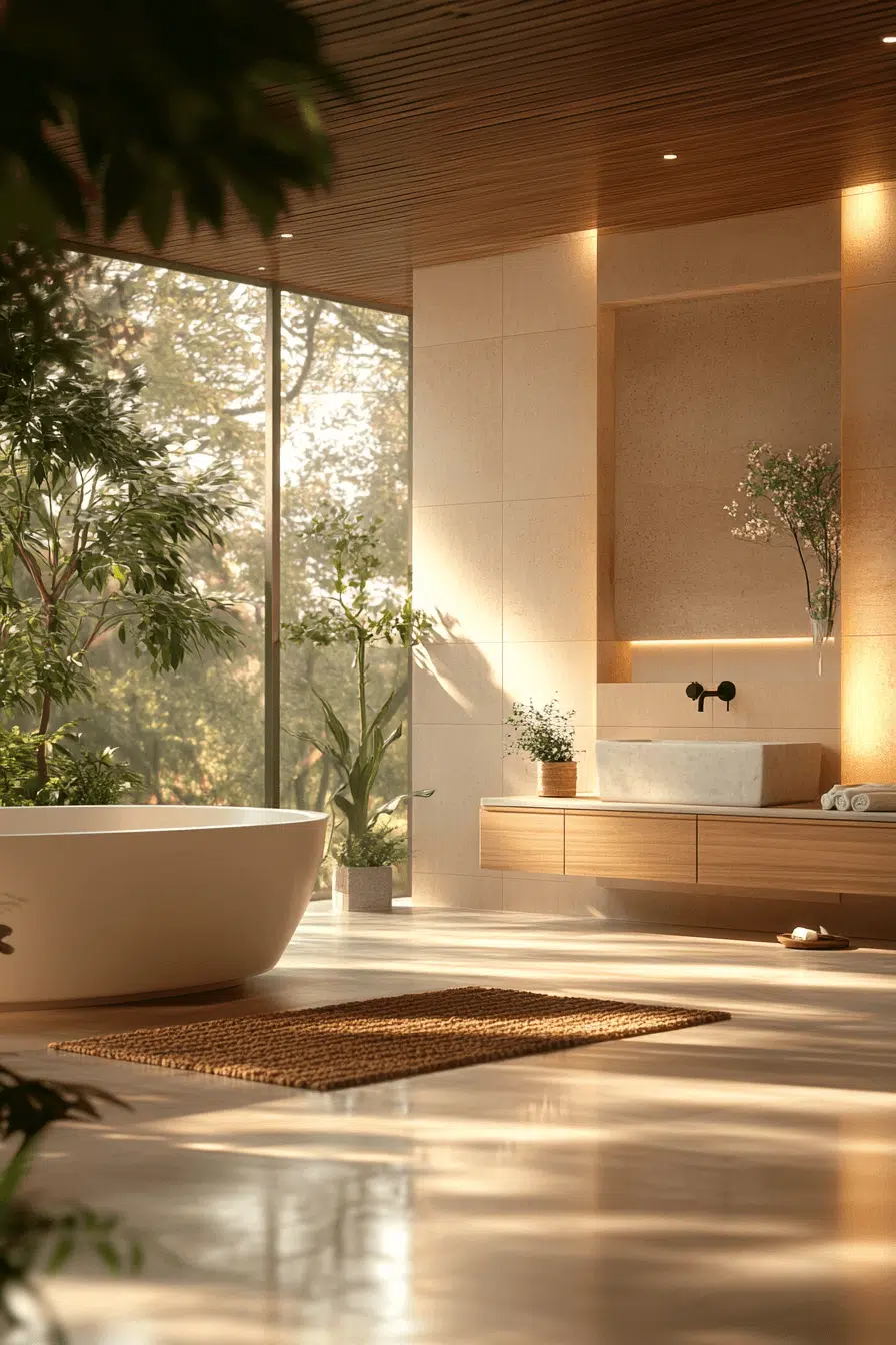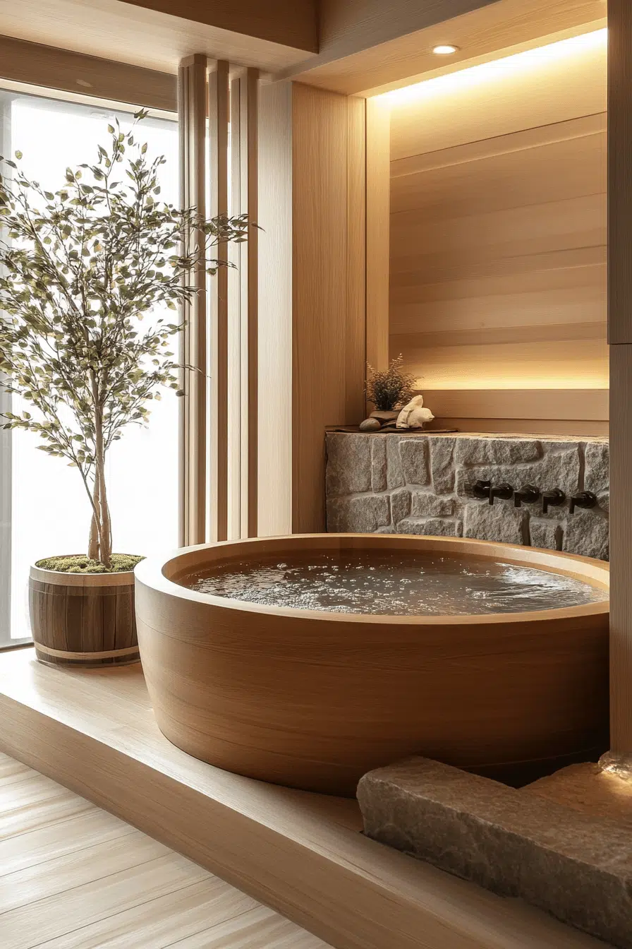 Deep soaking tubs introduce ritual and mindfulness into zen bathroom decor ideas. Ofuro-style tubs encourage slow, immersive relaxation. Their simple forms align perfectly with minimalist principles. Natural materials enhance the sensory experience. The tub becomes the emotional centerpiece of the space. Explore more zen bathroom decor ideas inspired by Japanese bathing traditions.