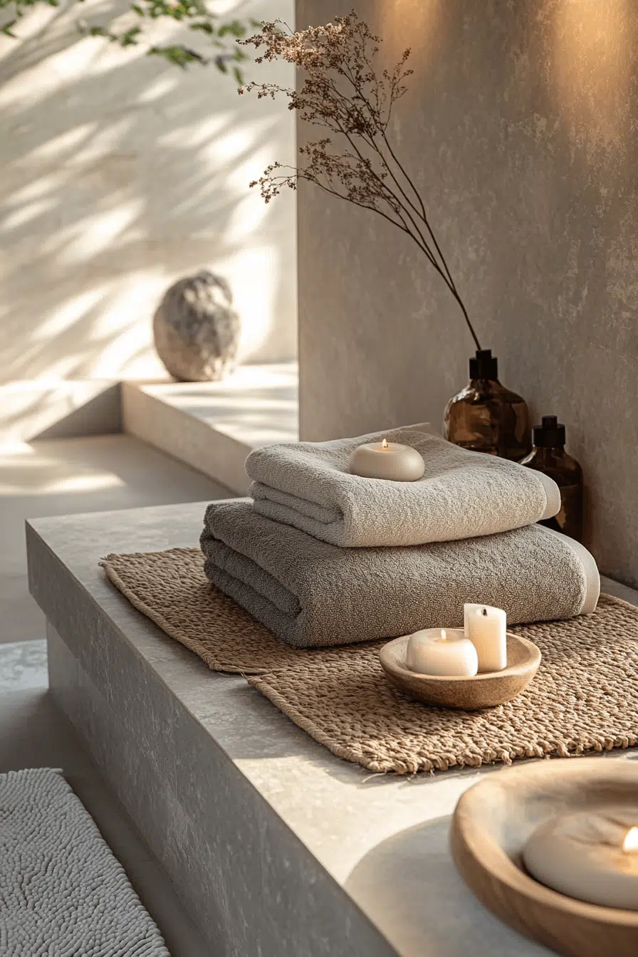 Soft textiles bring comfort and warmth to refined zen bathroom decor ideas. Linen mats, plush towels, and gentle fabrics soften hard surfaces. These layers add emotional ease without visual clutter. Thoughtful texture balance supports relaxation. The bathroom feels welcoming and restorative. Discover more zen bathroom decor ideas centered on tactile harmony.