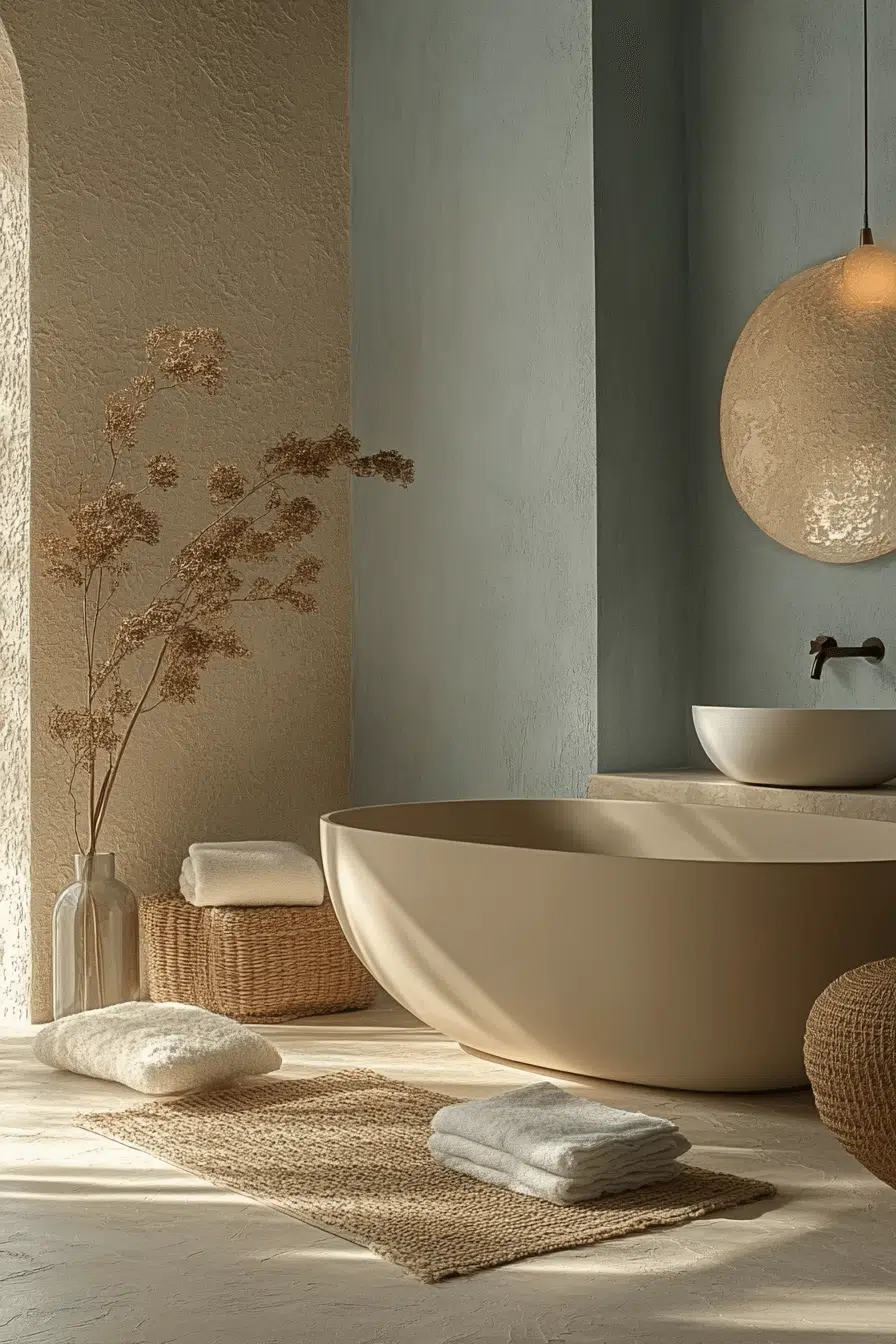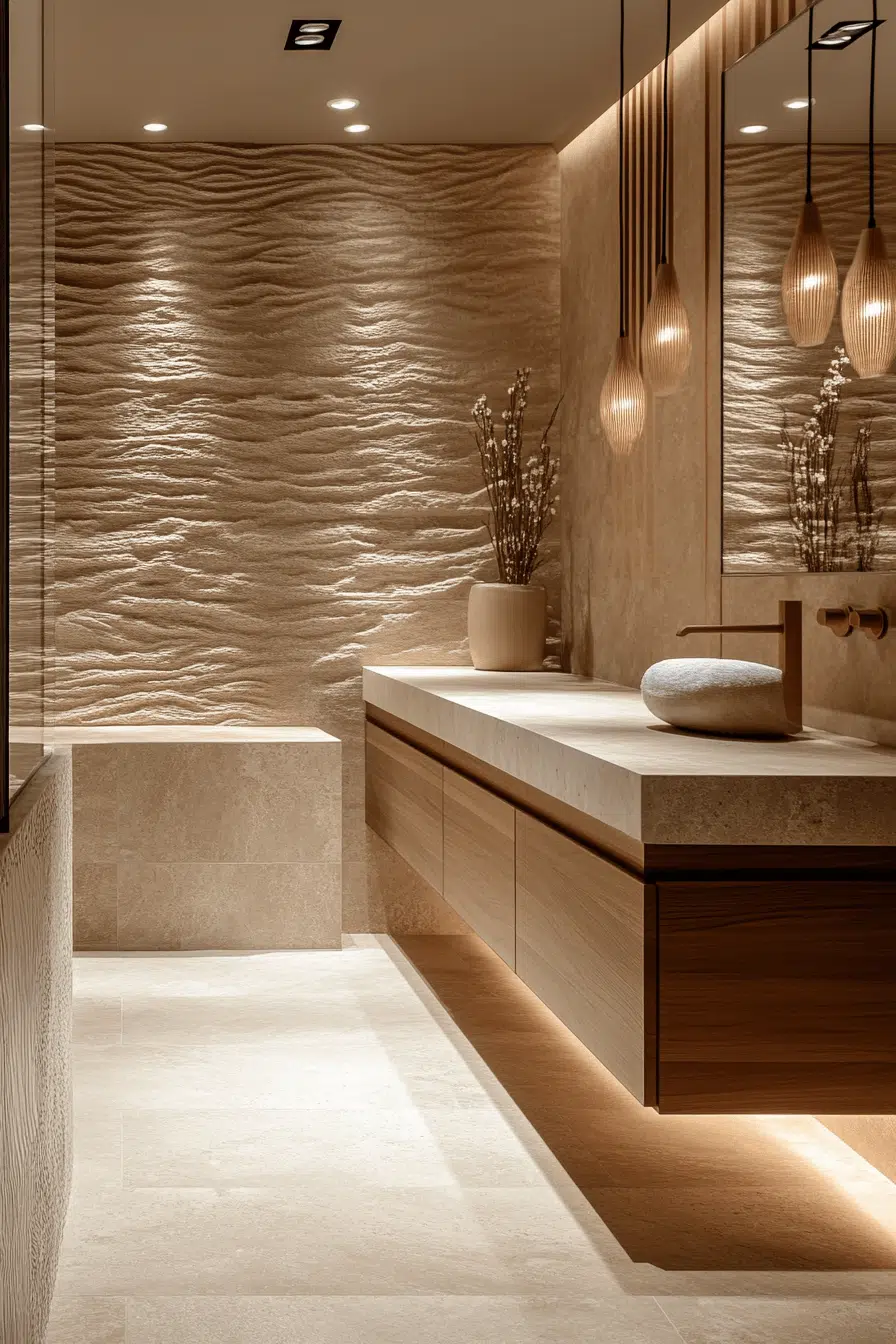 Matte finishes soften reflections and enhance warmth in zen bathroom decor ideas. The velvety texture diffuses light gently. These finishes create a sense of calm and refinement. Every surface feels intentional and relaxed. The balance between luxury and simplicity feels effortless. Explore more zen bathroom decor ideas centered on matte textures.