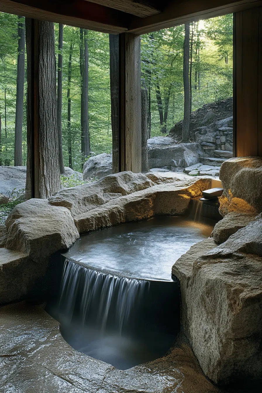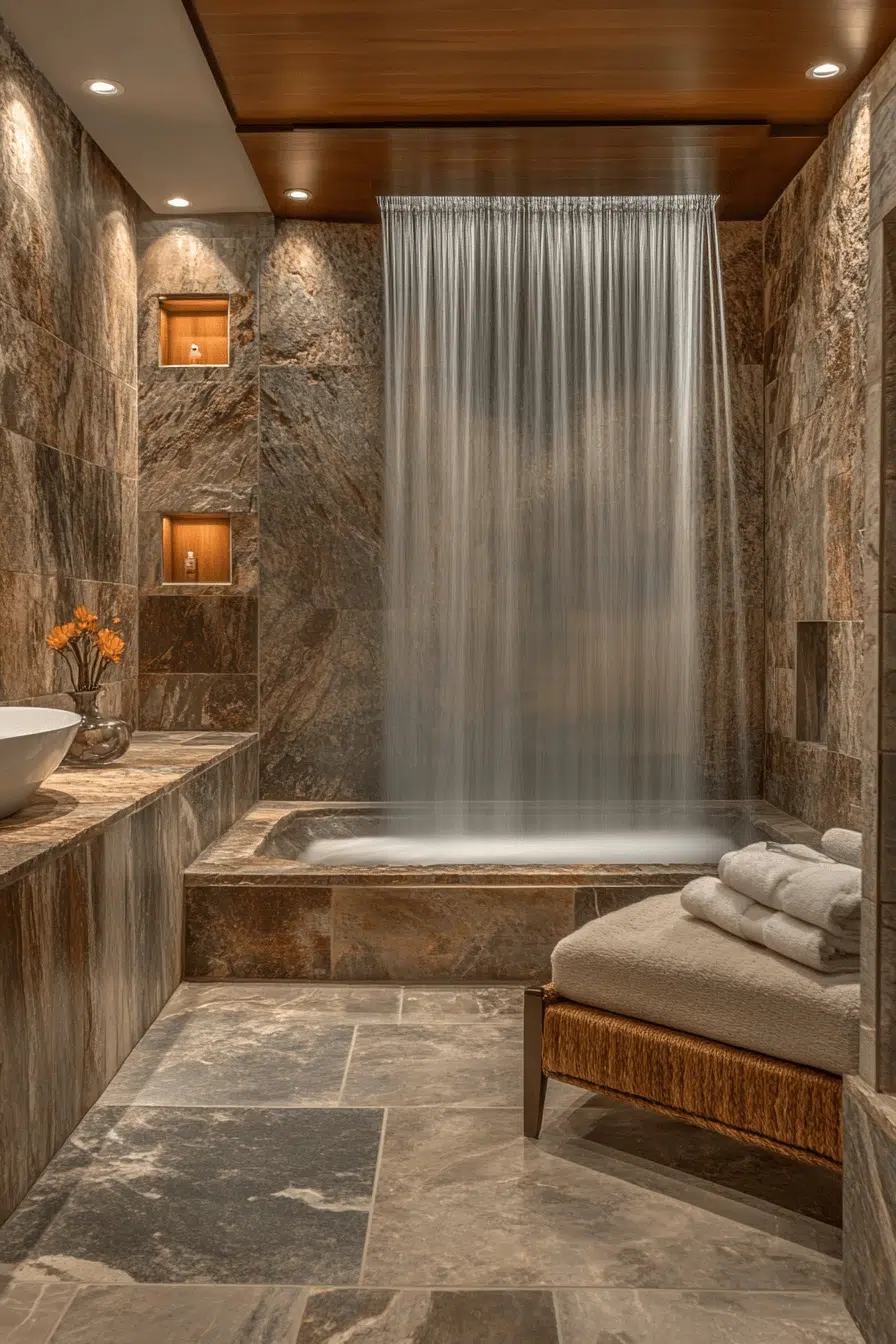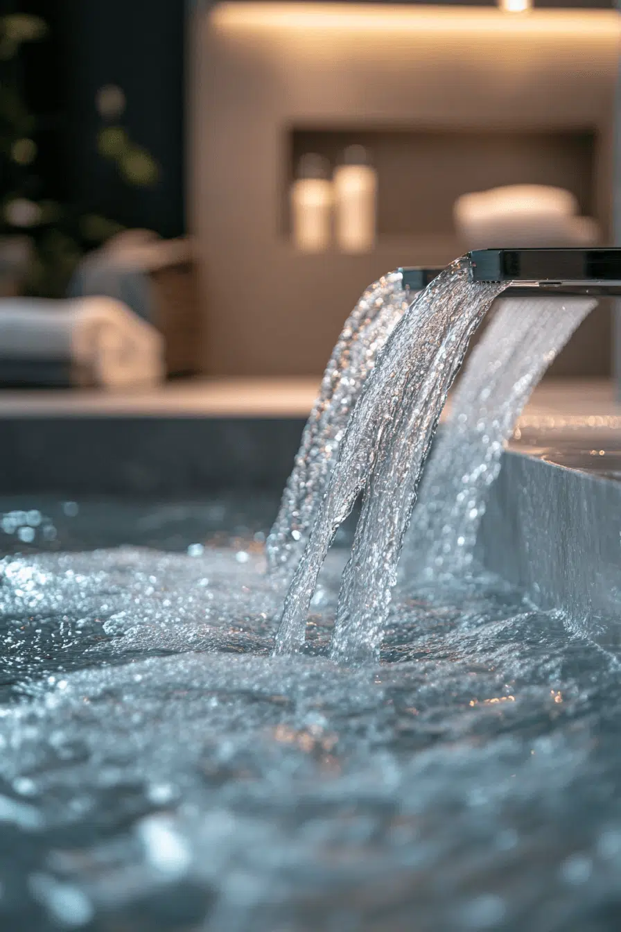 Water features introduce a meditative presence that elevates thoughtful zen bathroom decor ideas. A waterfall faucet or stone-inspired feature wall creates both visual and sensory calm. The soft sound of flowing water supports relaxation and mindfulness. Minimal accessories keep the focus on balance and serenity. The space feels refreshed and alive. Explore more zen bathroom decor ideas inspired by flowing water.